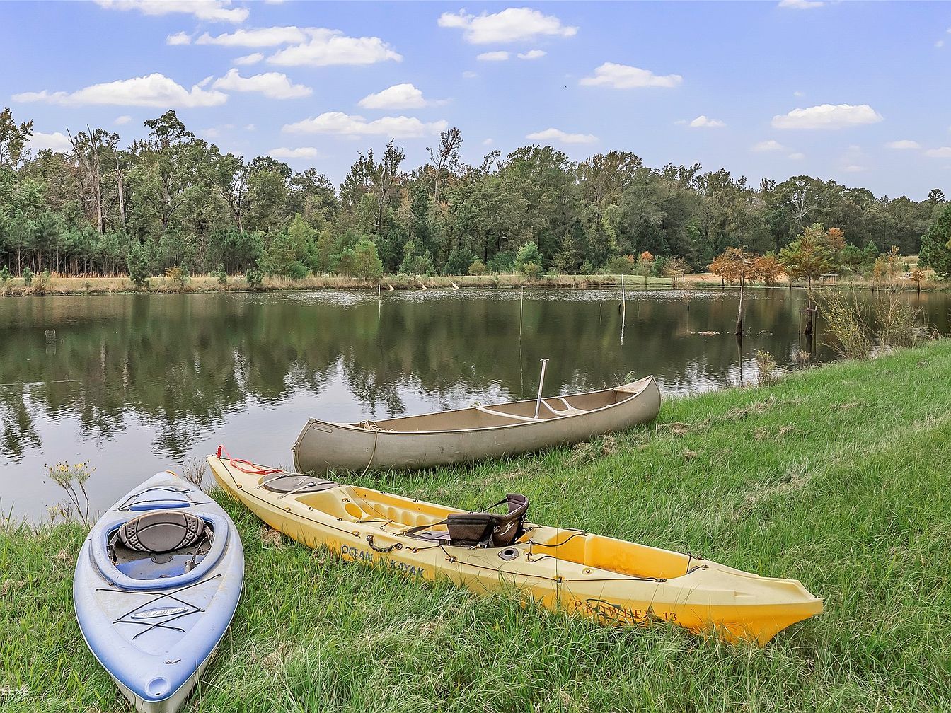 Nestled by a serene lake, this inviting outdoor space showcases kayaks and a canoe resting on lush green grass. The calm waters reflect a picturesque landscape framed by a variety of trees, offering a perfect canvas for nature lovers. A blend of soothing blue and vibrant yellow hues from the kayaks add a playful touch, inviting family adventures. Ideal for gatherings, the grassy area provides ample space for children to play or for picnics by the water. This natural haven emphasizes tranquility and recreation, embodying a family-friendly environment that harmonizes with the beauty of the surroundings.