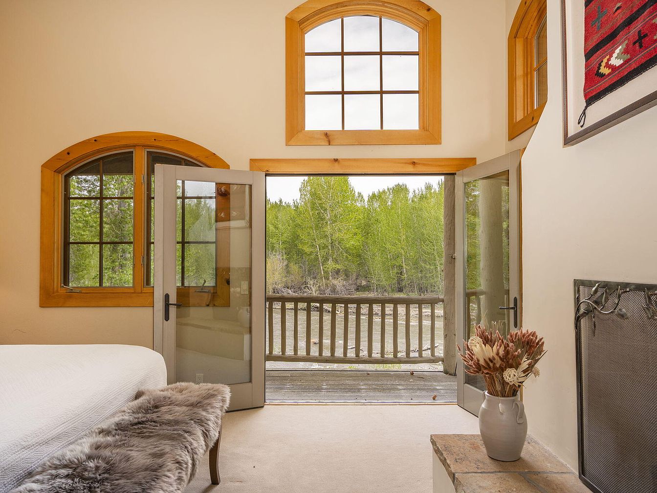 This exceptional custom log home in Hailey, Idaho, exudes status and success with its coveted 3.5-acre riverfront location on the Big Wood River, inviting world-class fishing right from the backyard. Blending timeless craftsmanship with modern comfort, the dramatic great room with soaring ceilings and panoramic windows is ideal for entertaining and relaxation. This architectural style celebrates classic mountain lodge living, seamlessly integrating indoor and outdoor spaces for an effortless flow and unique appeal. Priced at $5,265,000, the home’s rare zoning for a guest house and horses, plus its expansive greenery and access to nature, make it an inspiring choice for the future-oriented, success-driven homeowner seeking both tranquility and prestige.
