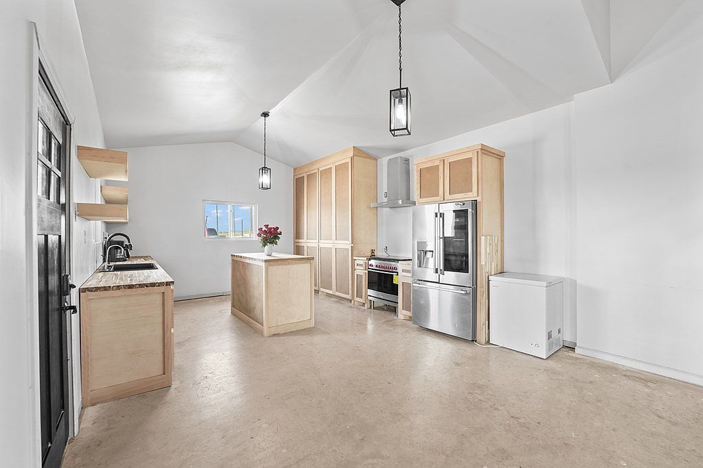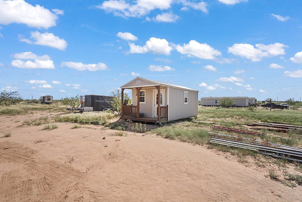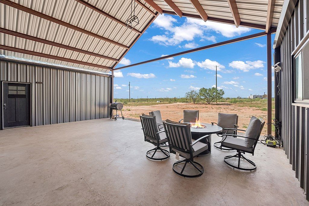 This custom-built barndominium, completed in 2023, features a striking architectural style that merges modern aesthetics with functional living, appealing to success-oriented individuals. Located in Midland, TX, on a generous 3-acre plot (with an option for an additional 3.5 acres), this home offers immense versatility for personal projects and lifestyle choices, including accommodating RVs and animals. Boasting 22-foot ceilings and an open-concept design with expansive living spaces, it embodies freedom and creativity. The listing price of $400,000 reflects its unique appeal and recent renovations, including customizable finishes. The concrete patio and large outdoor area facilitate entertaining, all surrounded by a secure, fenced perimeter, making it ideal for those looking to invest in their future.