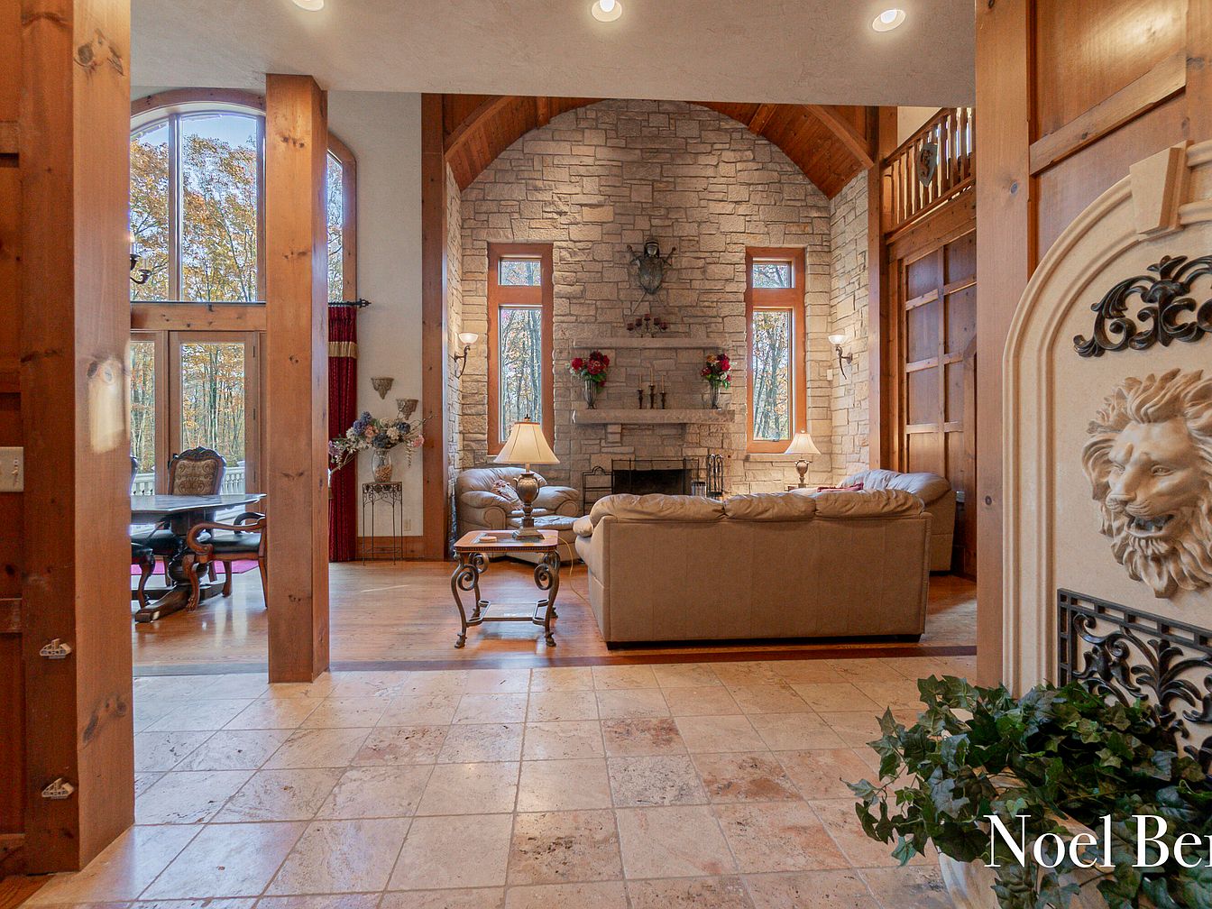 This stunning Gothic Revival-style home, built in the 15th-century architecture tradition, stands on nearly 60 acres in Allegan, MI, offering an exquisite blend of historical charm and modern luxury. Priced at $2,150,000, the approximately 7,500 sq ft residence features five bedrooms, three and a half baths, and intricate details like Ash flooring and Italian marble. Key amenities include a main-floor master suite, five fireplaces, and an elevator, making it ideal for a success-driven individual. Recent renovations enhance both comfort and aesthetic appeal, while abundant wildlife and privacy contribute to the property’s allure, making it a perfect retreat for future-oriented living.