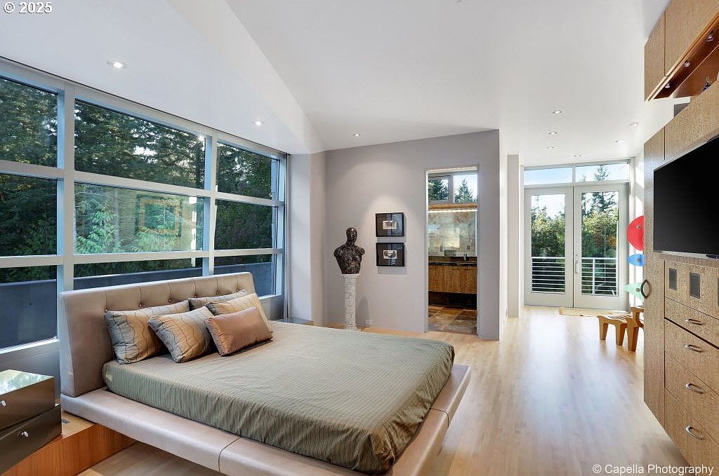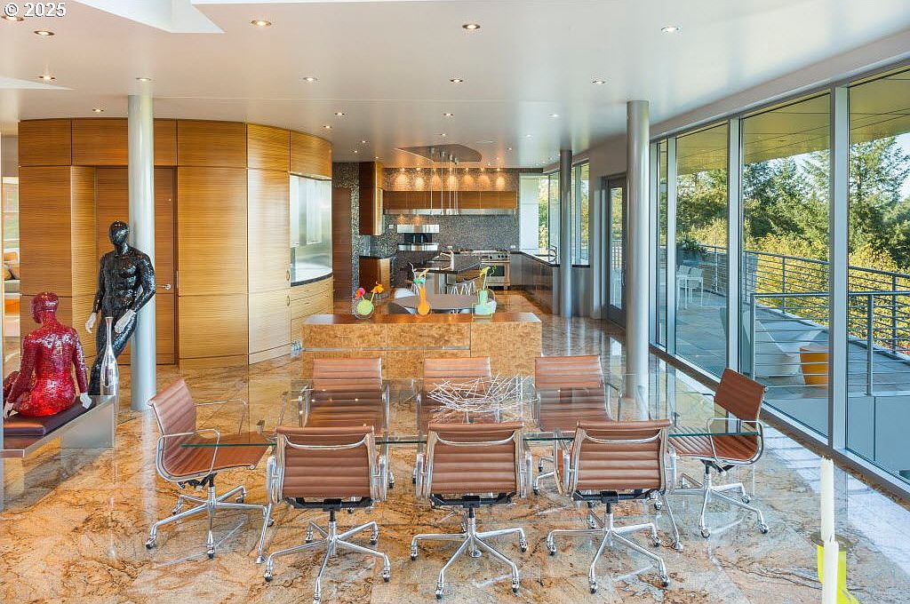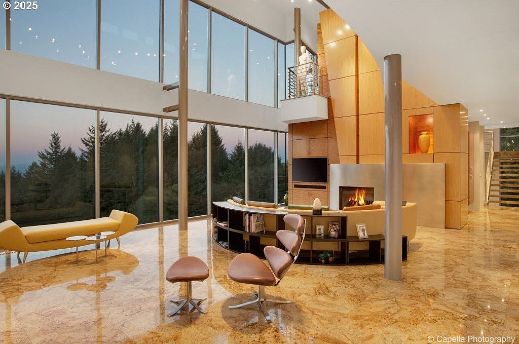 This custom modern home in Portland’s prestigious West Hills exemplifies status and future-oriented living, set on a private 10-acre Forest Park estate. Its striking steel-and-glass exterior, imported stones, and 20+ foot ceilings create an extraordinary architectural statement, impossible to replicate due to its bespoke craftsmanship and high-level engineering. Perfect for success-minded individuals, it boasts an expansive, light-filled interior with a commercial chef’s kitchen, spa-like indoor pool, elevators, soundproof studio, and a six-car garage, embodying luxury, technology, and seclusion. Built to be both a home and an artwork, it offers breathtaking mountain and forest views, a guest house, and premier outdoor living spaces. Listed at $5,995,000, this property is truly unparalleled in Portland.