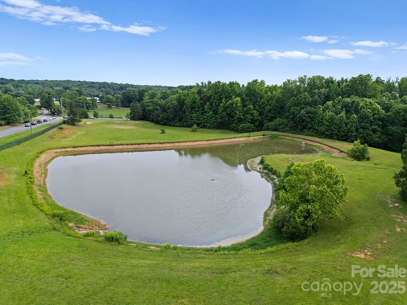 This picturesque property features a serene pond beautifully framed by lush greenery, perfect for nature enthusiasts. The gently sloping terrain provides excellent opportunities for outdoor activities and family gatherings. A spacious lawn bordered by trees offers privacy and tranquility, making it an ideal setting for a future home. The clear water reflects the surrounding landscape, inviting peaceful afternoons or morning coffee with stunning views. Nearby roads blend seamlessly into the natural surroundings, ensuring convenient access while maintaining a sense of seclusion. This site promises an inviting atmosphere for family connections and outdoor adventures.