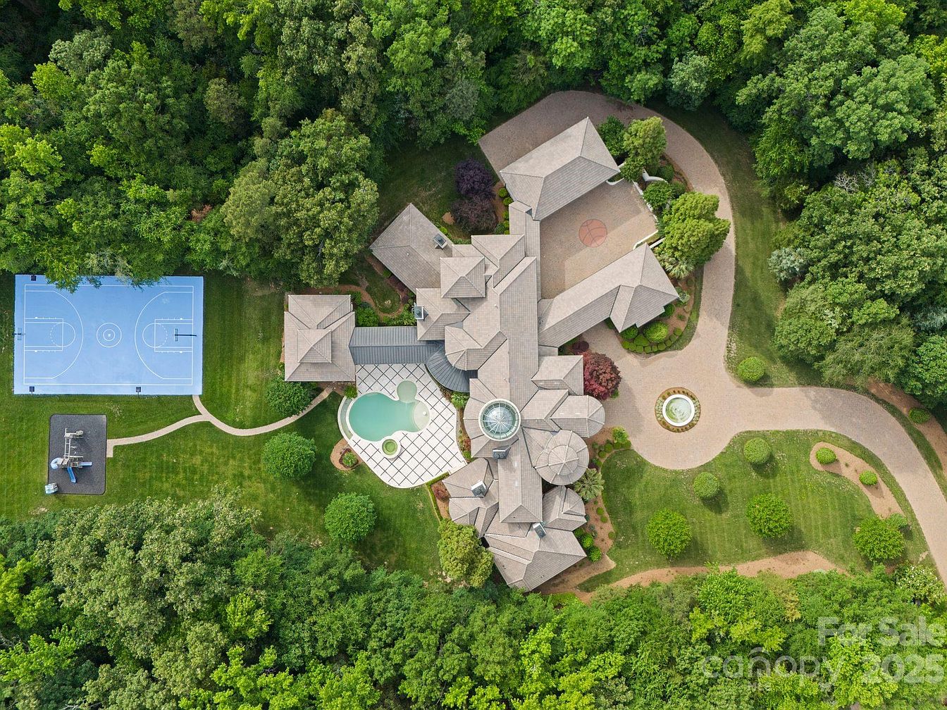 This 12,000 SF estate, nestled on a sprawling 30-acre plot in Waxhaw, NC, exemplifies luxury and prestige, historically owned by an NBA legend. Designed with a future-oriented mindset, its soaring 30-ft ceilings, expansive living spaces, and amenities, including a lighted basketball court and professional gym, cater to those striving for success. The estate features a unique architectural style that blends elegance with functionality, while recent renovations enhance its modern appeal. Priced at $14 million, it boasts serene outdoor spaces, including a private pond and pool, ensuring both privacy and grandeur for high achievers. Built for entertaining, this property is a rare legacy investment, offering an unforgettable lifestyle.