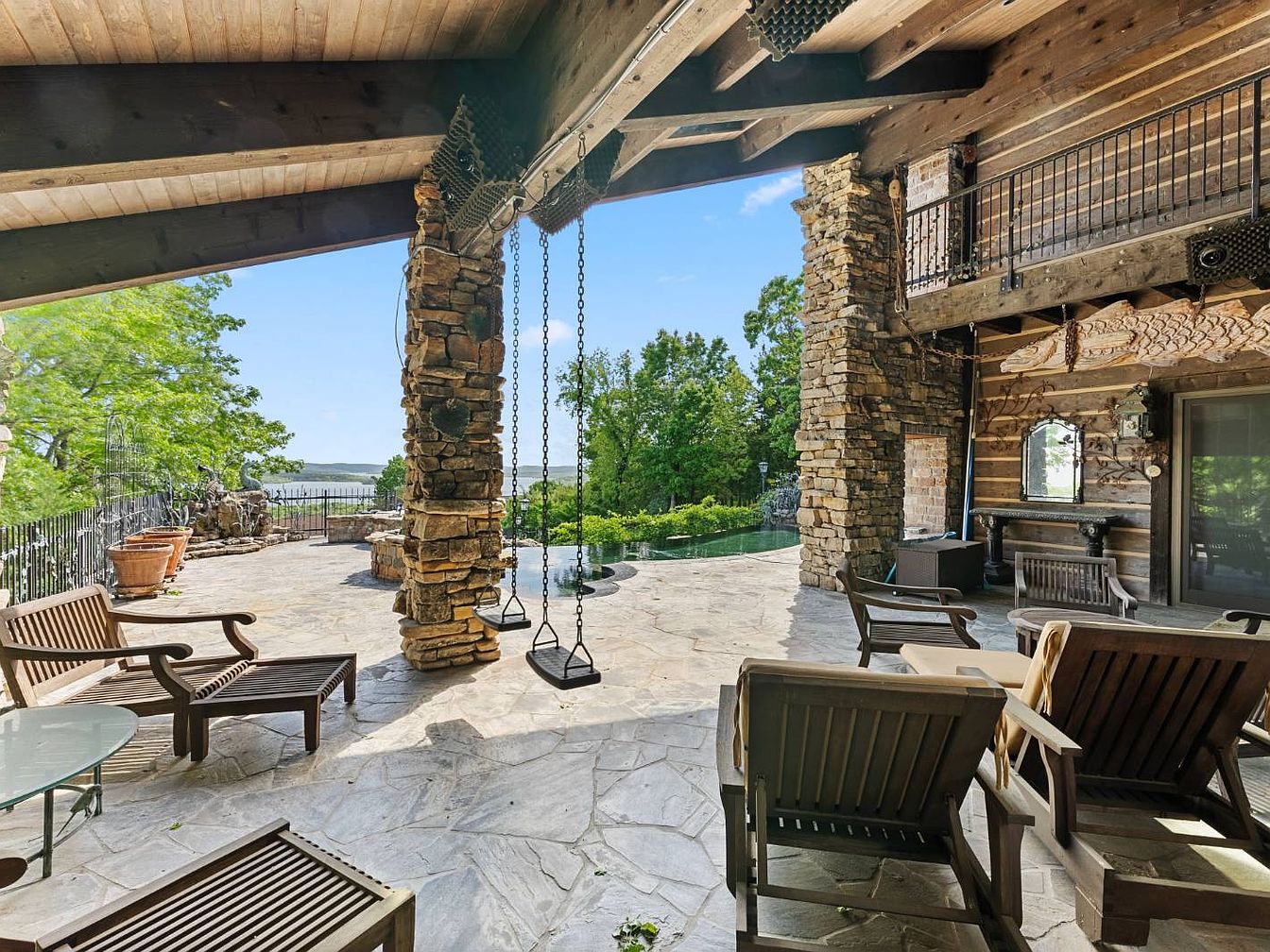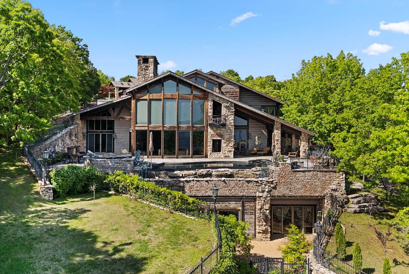 This extraordinary 13,800 sq. ft. estate in Branson, MO, epitomizes timeless status and forward-thinking luxury with its blend of Old World artistry and exceptional American craftsmanship. Set on an exclusive gated plot overlooking Table Rock Lake, the home is a hallmark of success, designed for grand gatherings, innovation, and prestigious entertaining. Hand-hewn chink logs, local stone, vaulted beamed ceilings, and one-of-a-kind historical details, like a rare terracotta A-B eagle from early 1900s Chicago, create a sense of rich heritage and distinction. Modern amenities abound, from a gourmet kitchen to spa-like suites and a spectacular lakeside pool with unique features. Listed at $6,999,000, this masterpiece offers both a tranquil retreat and a symbol of achievement, all moments from vibrant Branson.