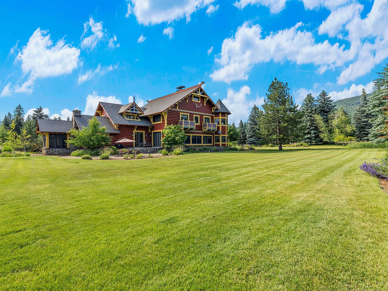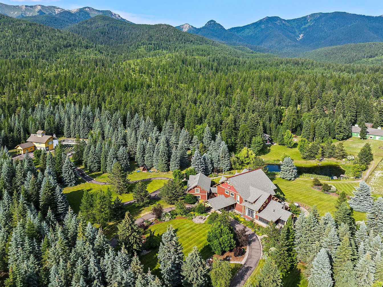 Plaid Swan Ranch, an iconic estate in Montana’s Flathead Valley, epitomizes legacy and forward-thinking living, combining unrivaled status appeal with an awe-inspiring wilderness setting. Centered around a 14,228-square-foot chalet-style main lodge inspired by Glacier National Park’s McDonald Lake Lodge, the estate spans nearly 60 acres with five additional homes, 4,200-square-foot stables, manicured hayfields, forests, and private trails. Near Bigfork and only 30 miles from Glacier Park International Airport, the property’s refined mountain architecture melds with European hunting lodge décor, offering a great room with soaring 27-foot ceilings, high-tech amenities, multiple entertainment spaces, wine cellar, and elevator. Listed for $24,250,000, Plaid Swan Ranch is a masterful confluence of Montana’s majesty and ultimate modern success.