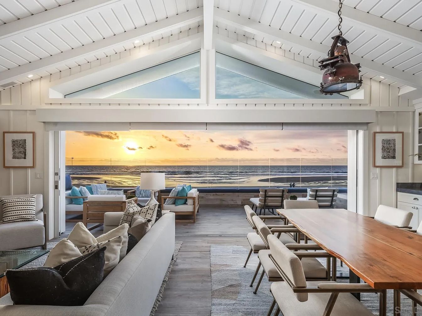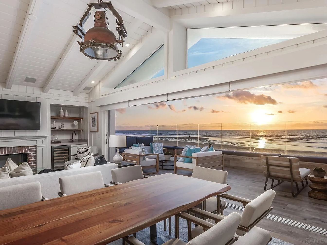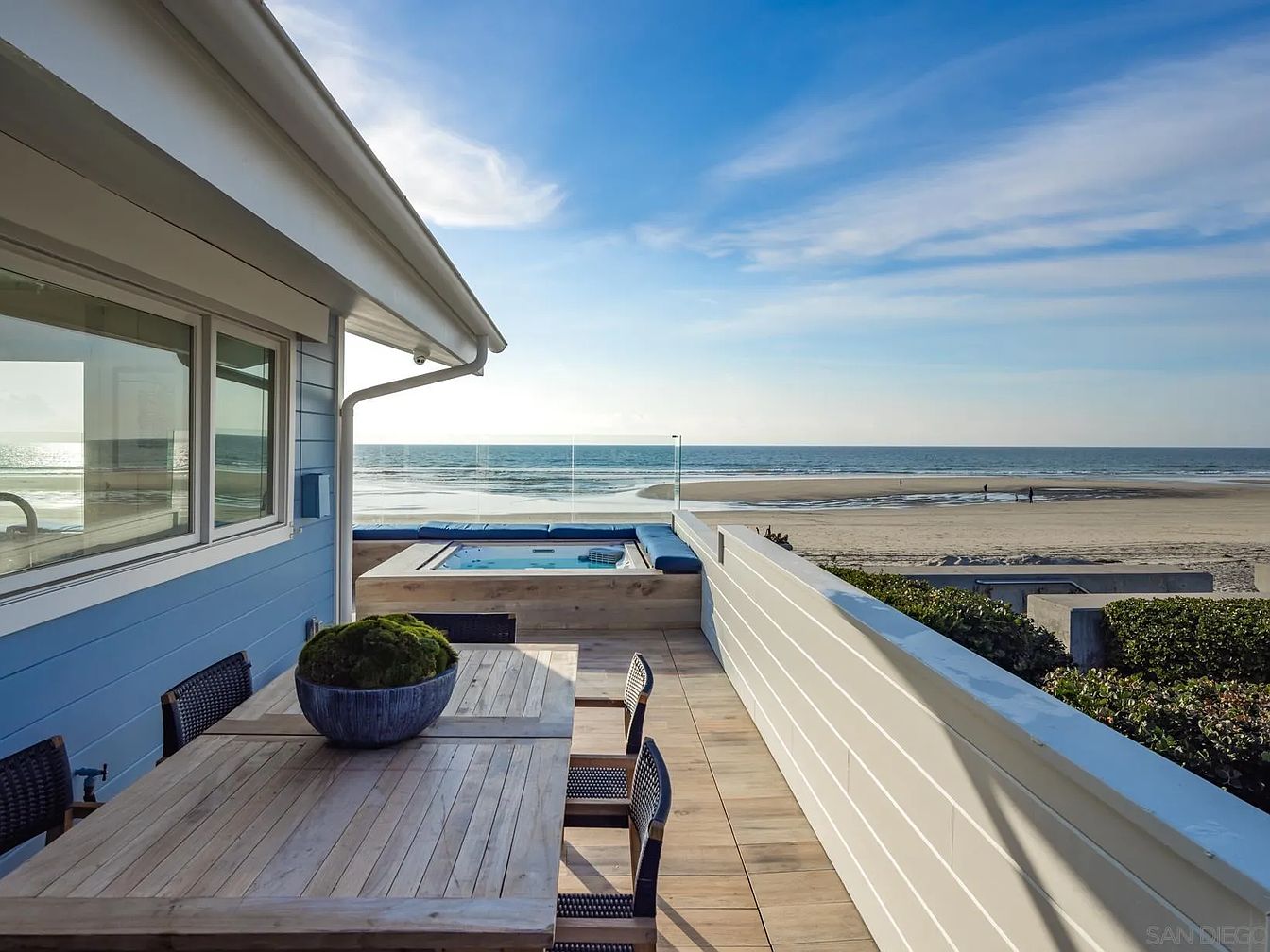 This oceanfront Del Mar home epitomizes status and exclusivity, boasting an enviable corner-lot location with direct sand access and unobstructed, panoramic ocean views, making it perfect for a success-driven, future-oriented owner. Its tastefully renovated, single-level main residence with vaulted ceilings, top-tier finishes, and timeless coastal architecture draws from classic beach house inspirations, seamlessly blending indoor and outdoor living. The rare privacy, no neighbor to the north, and expansive wraparound deck invite relaxation or entertainment with sunset jacuzzis and alfresco dining. Complete with five bedrooms, guest quarters, and sophisticated communal spaces, the property sits steps from renowned Del Mar dining and shopping. Priced at $18,000,000, this one-of-a-kind luxury home promises both prestige and enduring value in a prime California coastal setting.