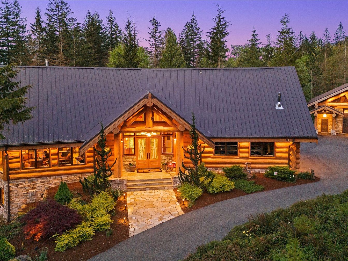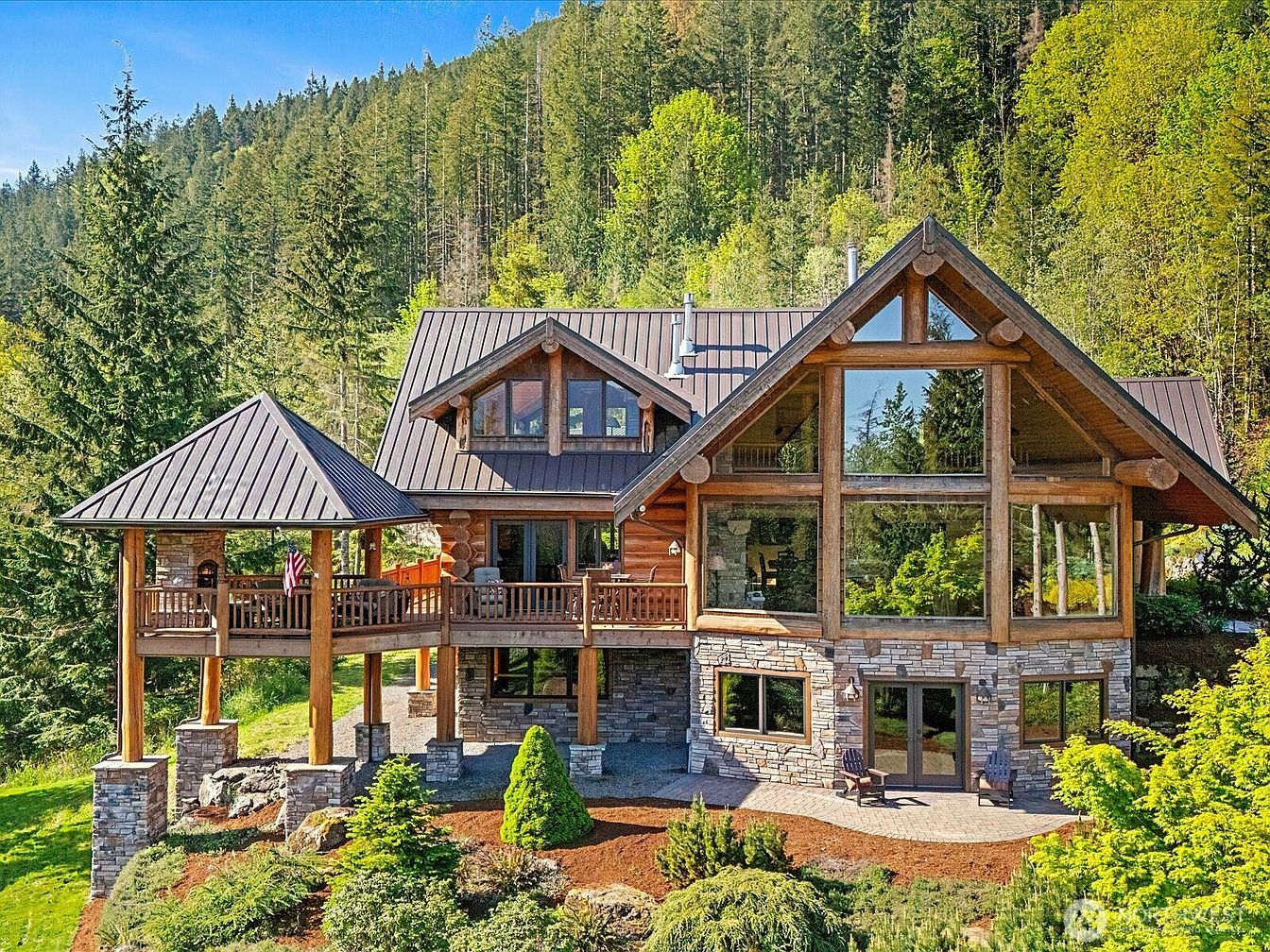 Nestled within the prestigious, gated Uplands Reserve in North Bend, WA, this 5,520 sq ft custom log estate on a sprawling 7.33-acre plot exudes both exclusivity and status appeal, symbolizing achievement and forward-thinking ambition. Blending luxury with nature, it showcases breathtaking Mt. Si views from almost every room, with grand open spaces, artisan-crafted timber, custom glasswork, and luxe fixtures. The home’s dramatic architectural style features soaring ceilings and walls of glass, designed to invite the outdoors in, making it perfect for those who value inspiration and success. Boasting amenities like a private movie theater, wine cellar, chef’s kitchen, five fireplaces, and a 1,600 sq ft matching shop, the $3,250,000 listing offers unparalleled comfort, privacy, and future potential.
