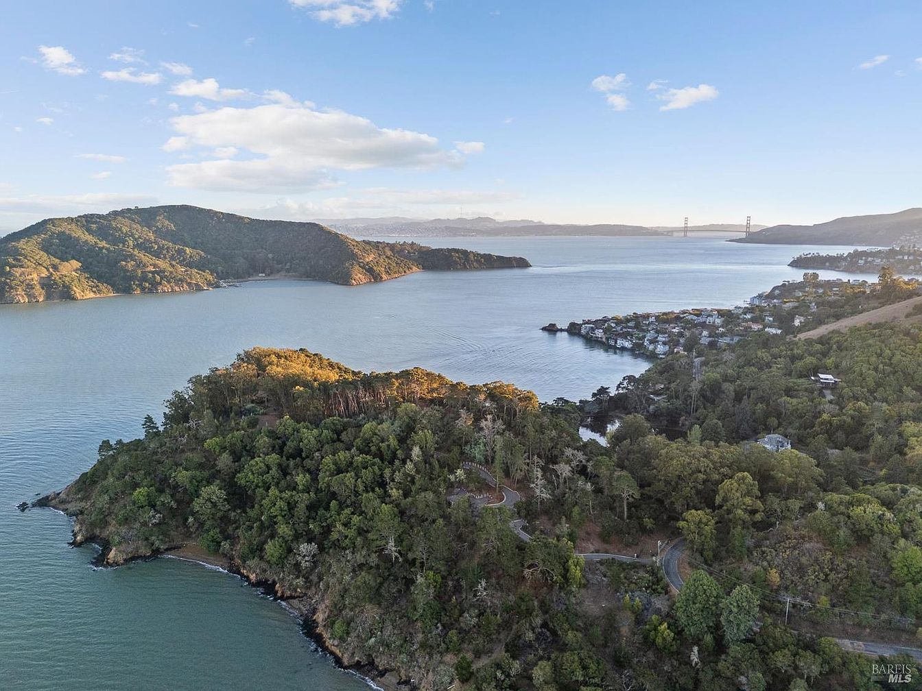 Expansive bay vistas create a breathtaking backdrop for this serene and private property, set on a lush, wooded hillside overlooking the water. The layout provides unobstructed, panoramic sightlines from nearly every angle, capturing the gentle curves of the coastline and distant bridges. The surrounding greenery offers natural privacy and spaces ideal for family gatherings, while the tranquil waterfront setting encourages outdoor activities and exploration. Warm, natural sunlight enhances the landscape’s vibrant greens and blues, establishing a peaceful, inviting atmosphere that complements the family-oriented, restful nature of this scenic, American coastal retreat.
