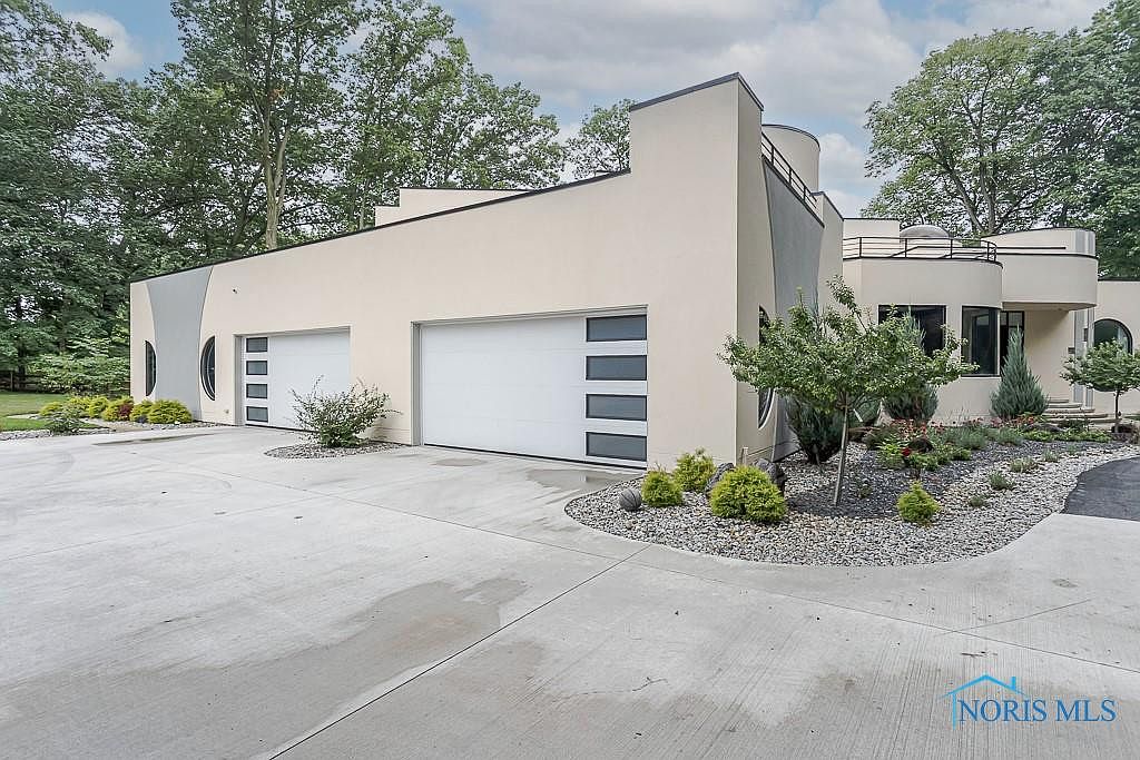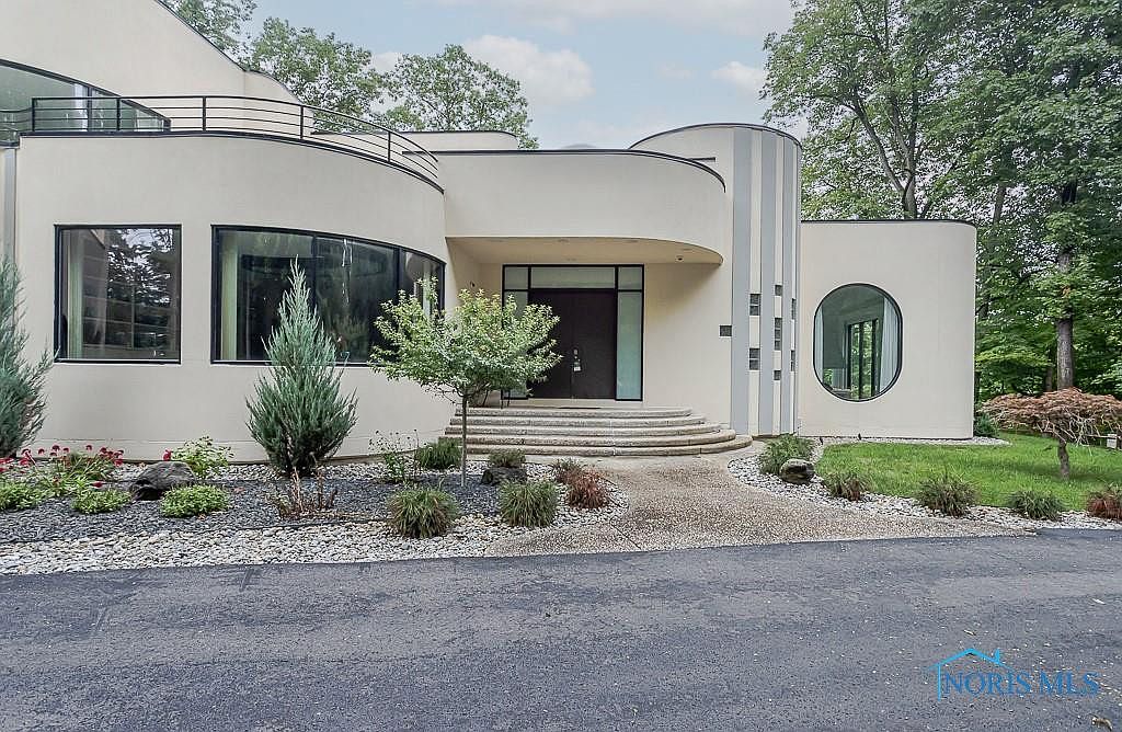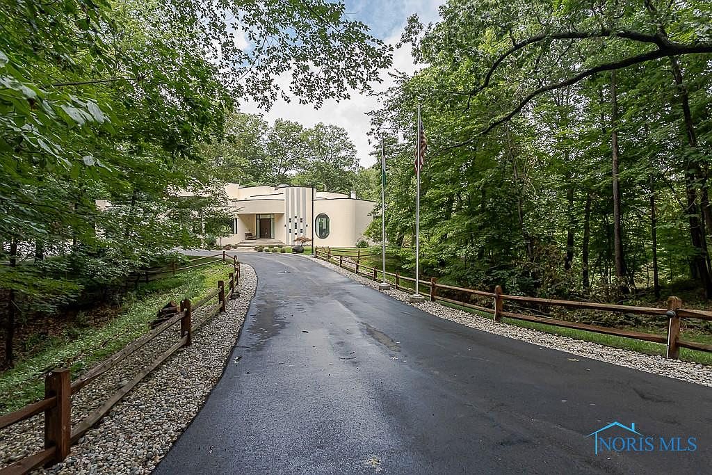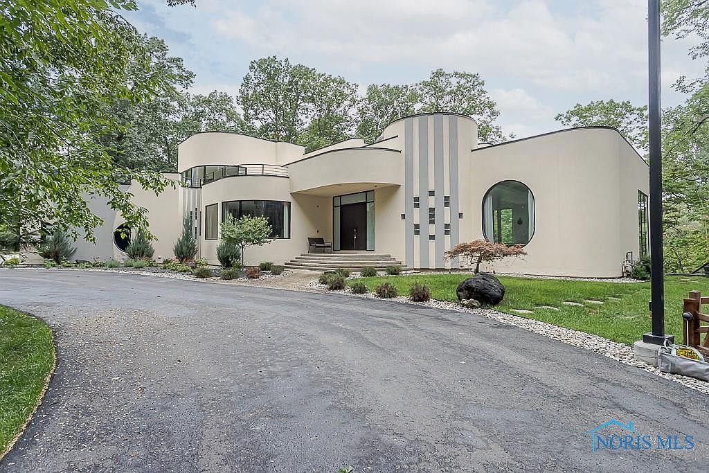 This stunning contemporary home stands as a symbol of success and forward-thinking, set on a secluded 2.8-acre plot along the 16th hole of the prestigious Sylvania Country Club in Toledo, OH. Its architectural design features bold modernist lines and expansive floor-to-ceiling windows, maximizing natural light and panoramic views of Ten Mile Creek. Perfect for an ambitious, future-oriented owner, the residence offers three luxurious levels serviced by an elevator, four bedrooms, eight bathrooms, five fireplaces, and a six-car garage, catering not only to comfort but also to lifestyle ambitions. The meticulously maintained property, currently listed at $1,575,000, offers privacy and sophistication, making it a beacon for those who value legacy and innovation in a serene, elite neighborhood.