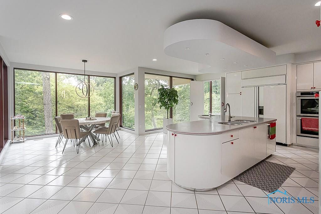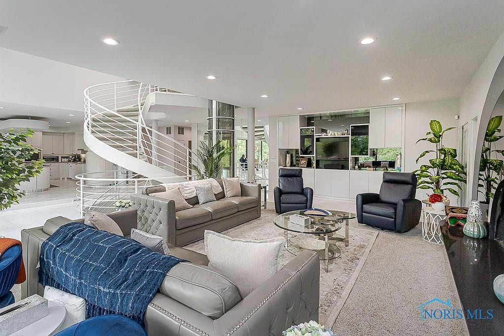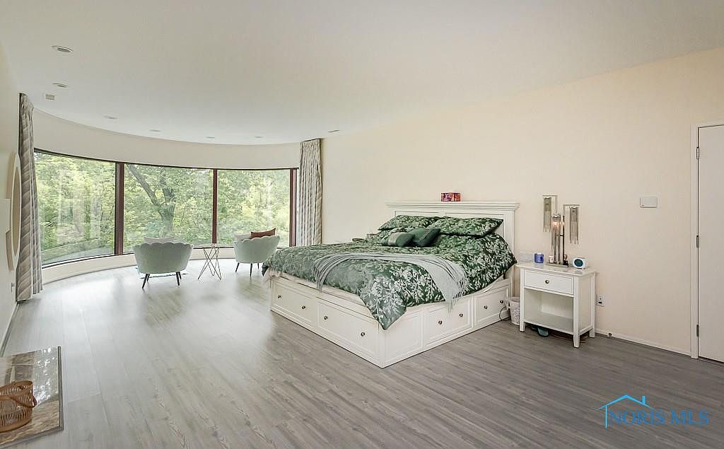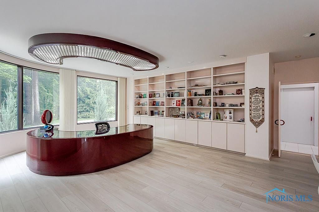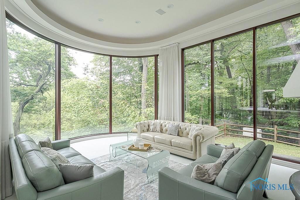 This stunning contemporary home stands as a symbol of success and forward-thinking, set on a secluded 2.8-acre plot along the 16th hole of the prestigious Sylvania Country Club in Toledo, OH. Its architectural design features bold modernist lines and expansive floor-to-ceiling windows, maximizing natural light and panoramic views of Ten Mile Creek. Perfect for an ambitious, future-oriented owner, the residence offers three luxurious levels serviced by an elevator, four bedrooms, eight bathrooms, five fireplaces, and a six-car garage, catering not only to comfort but also to lifestyle ambitions. The meticulously maintained property, currently listed at $1,575,000, offers privacy and sophistication, making it a beacon for those who value legacy and innovation in a serene, elite neighborhood.