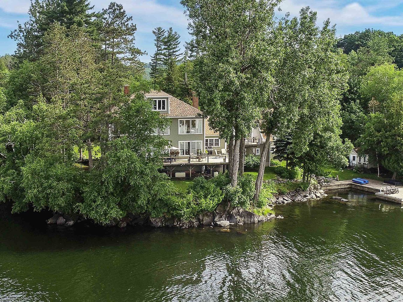 This spectacular, recently renovated colonial home in Newport, VT, epitomizes status and future-oriented living, blending timeless elegance with contemporary upgrades. Overlooking coveted Lake Memphremagog from a south-facing 1.2-acre peninsula with 295 feet of private shoreline, this 5-bedroom main residence and 2-bedroom suite provide breathtaking lake and mountain vistas through expansive windows. Designed for those who value success and tranquility, the property features an open-concept living/dining area, a modern kitchen with granite countertops, and vast decks for premier indoor-outdoor living. With extensive gardens, beach, dock, three-bay garage, and premier access to recreation, from skiing to golfing, the $1,450,000 listing offers unmatched luxury, privacy, and opportunity for the ambitious homeowner. Square footage details not specified.