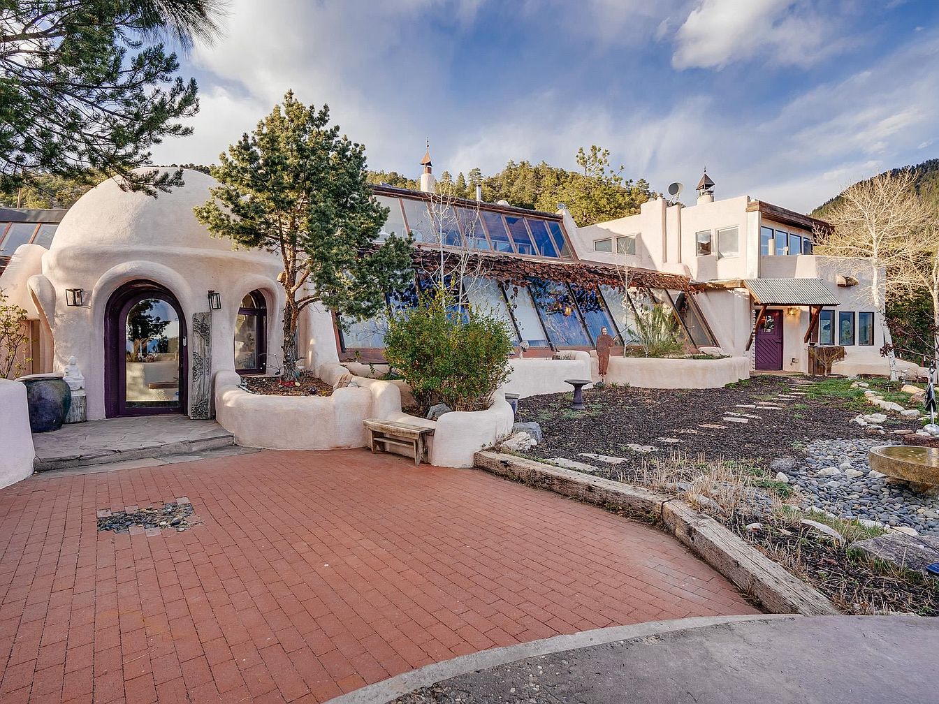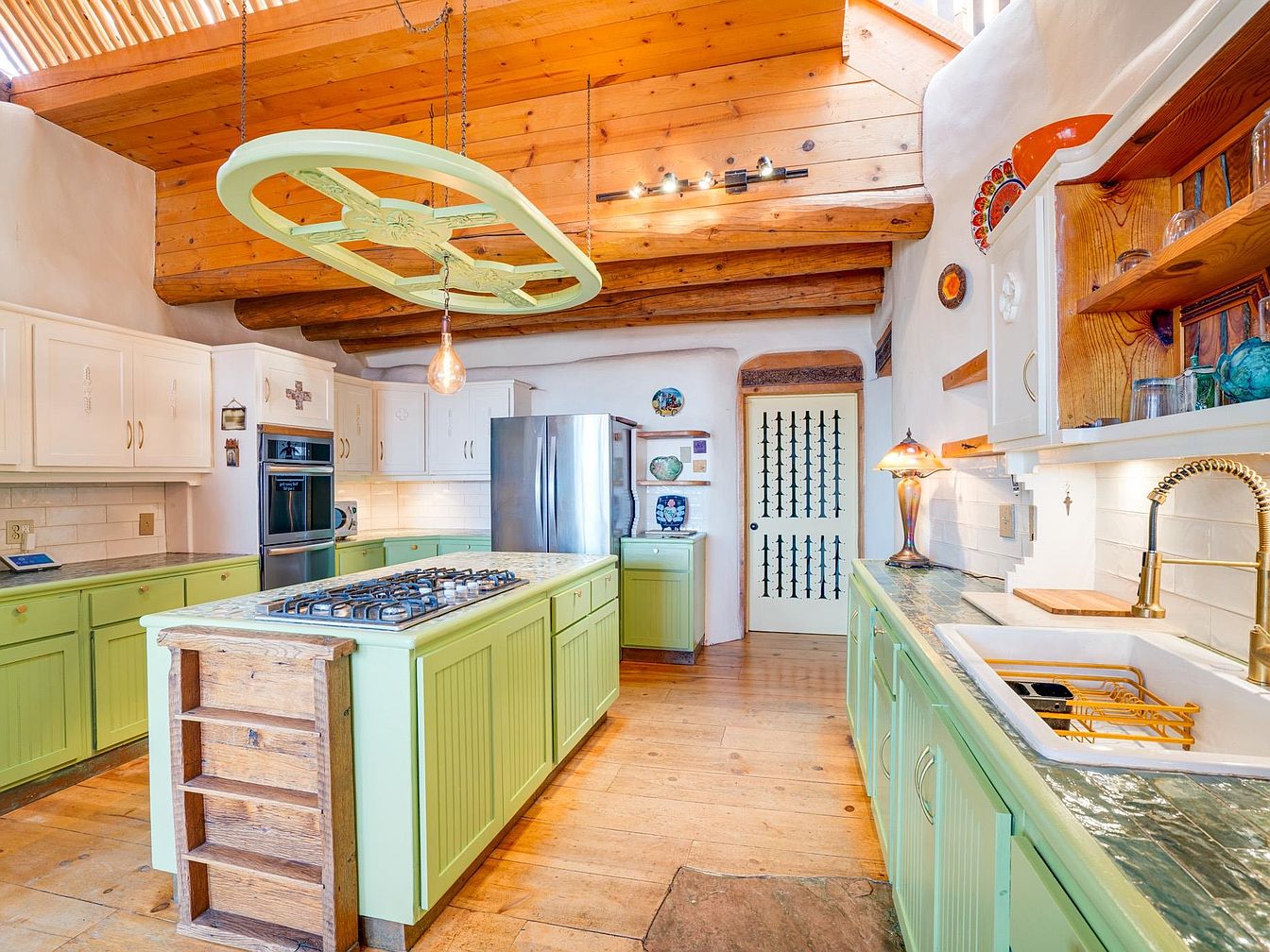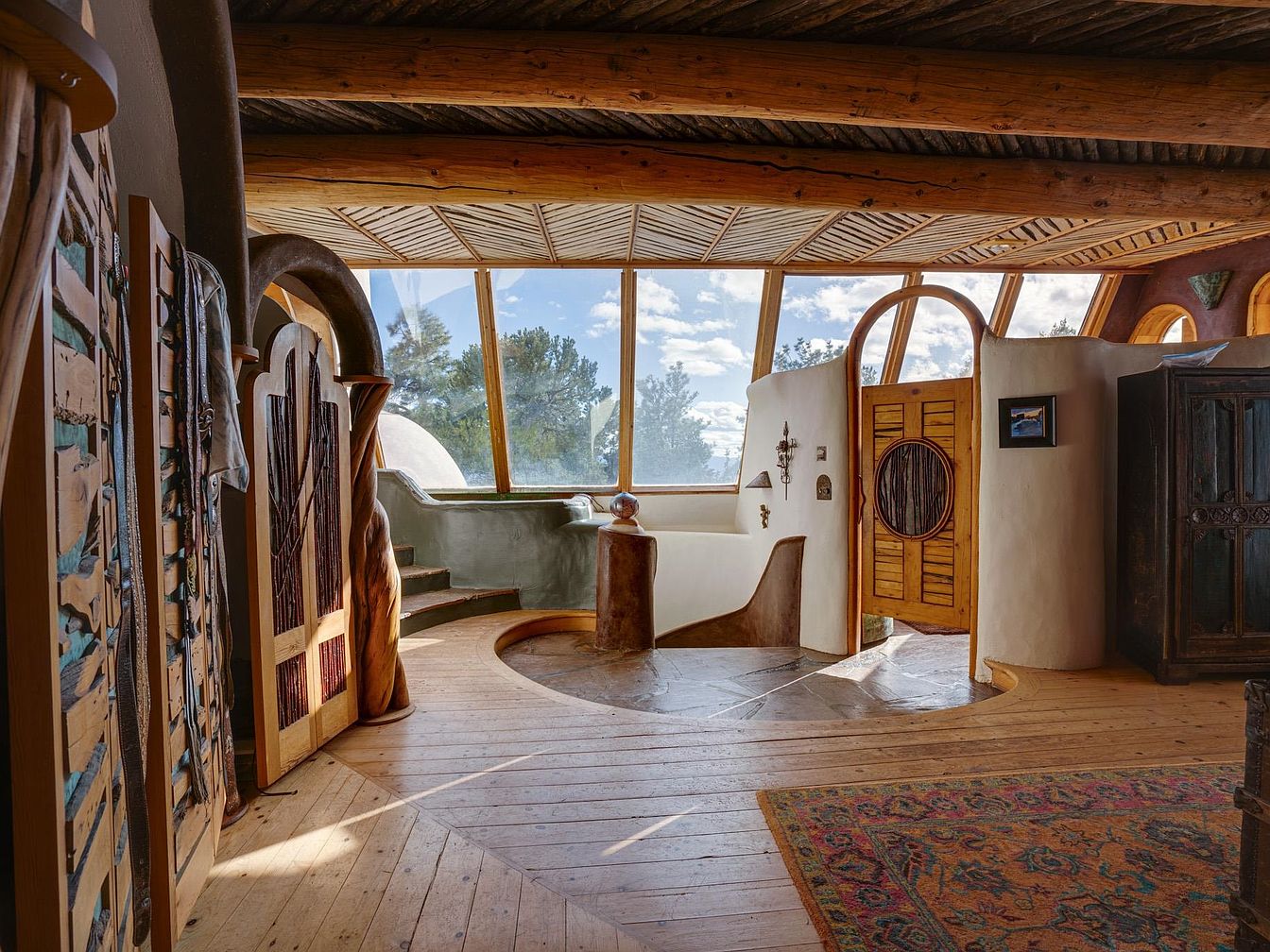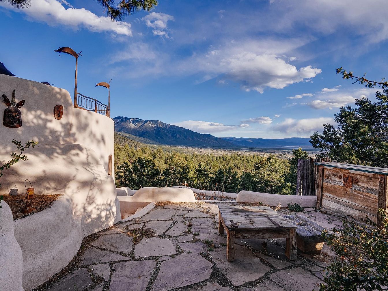 This striking pounded-earth home, designed by renowned builders Michael Reynolds and Peter Kolshorn, stands as a testament to sustainable living amidst the breathtaking landscapes of Taos County, NM. Built on 6.87 acres, featuring stunning mountain vistas, this artistic abode encompasses a perfect blend of adobe and frame architecture, embodying tranquility and comfort. Its 4 bedrooms and luxurious amenities, including a hydroponics system and dedicated artist studio, make it ideal for future-oriented individuals. Recent renovations enhanced its sustainable features, including solar panels and water cisterns. With a listing price of $1,450,000 and over 3,000 square feet of beautifully curated living space, this home is not just a residence; it’s an artist’s dream and a peaceful mountain retreat.