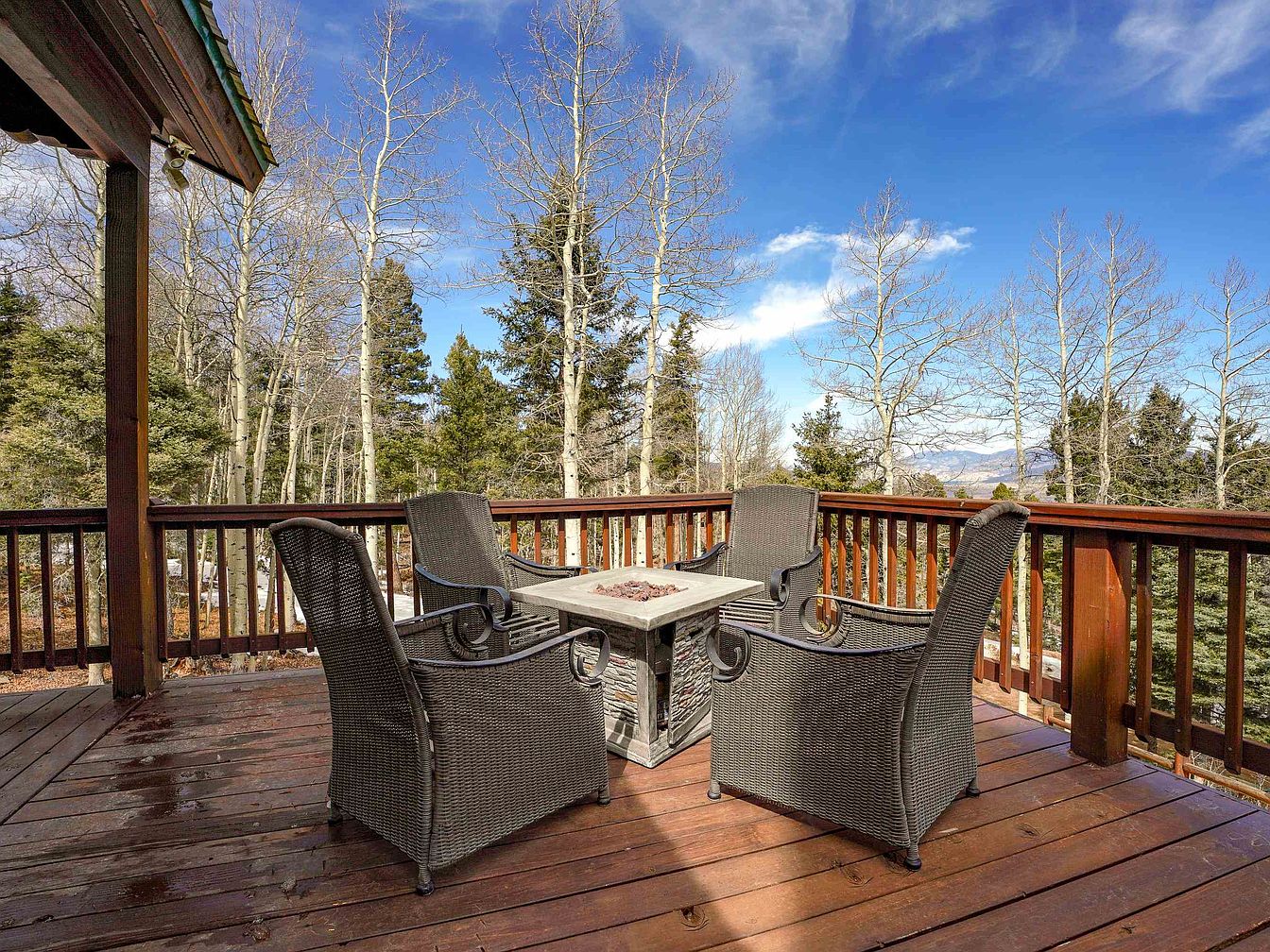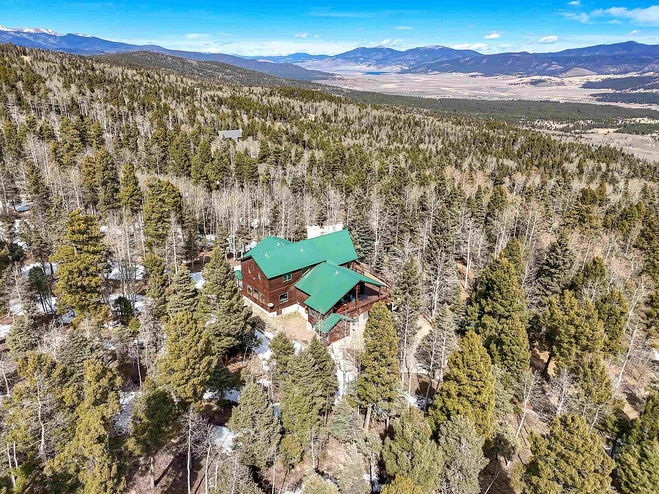 Nestled in the prestigious Aspens subdivision of Angel Fire, NM, this custom-crafted luxury mountain home embodies status and success while offering breathtaking views of Moreno Valley and the Angel Fire Ski Area. Built to impress, its rustic architectural style features expansive windows and natural stone accents, perfect for a future-oriented individual who values comfort and nature. Spanning 5 acres with 4,500 square feet, the property boasts 5 bedrooms and 4.5 bathrooms, complemented by a stylish open-concept design and a modern kitchen. Recently renovated, it offers top-tier amenities, such as a complete surround sound system and an elevator. Priced at $1,900,000, this retreat is an ideal sanctuary for leisure and adventure.