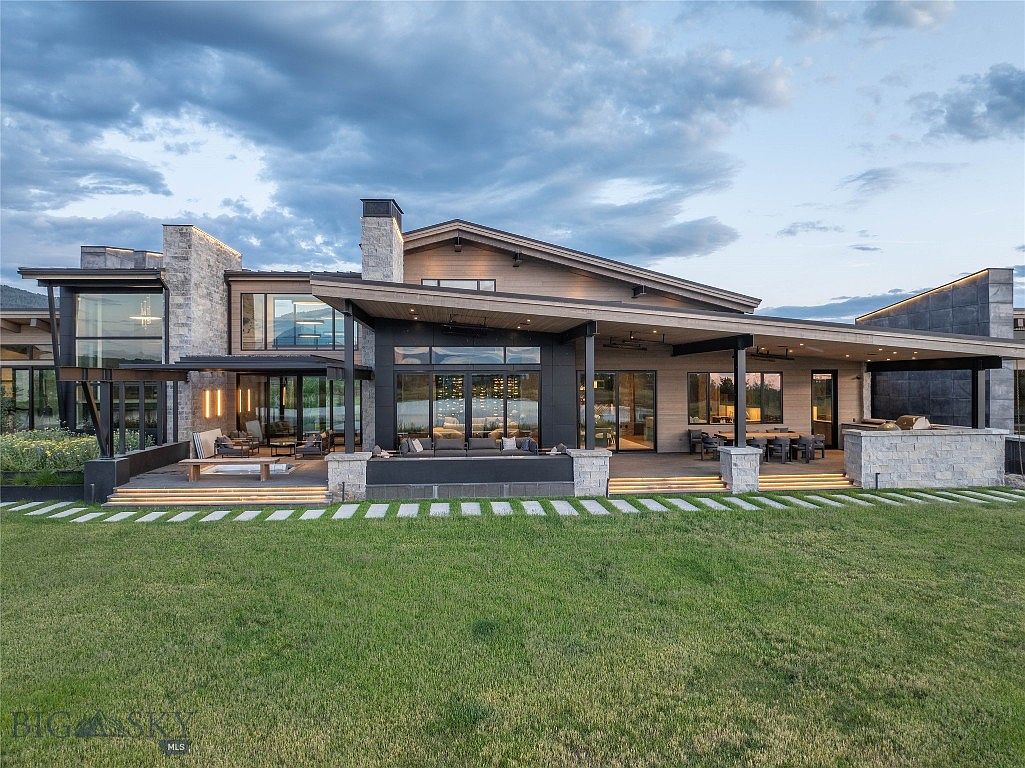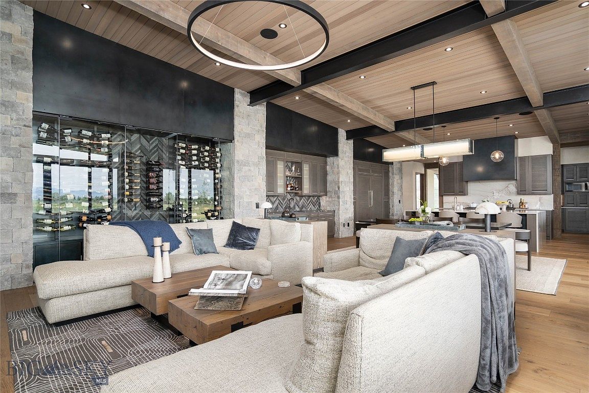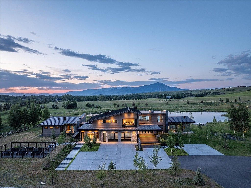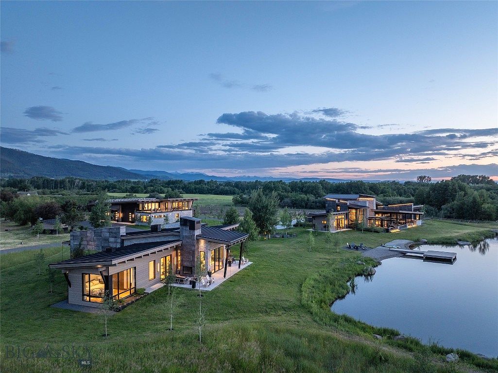 Lightfell, a stunning estate completed in 2024, embodies modern luxury with a focus on harmony between light, land, and water. Nestled just 10 minutes from downtown Bozeman, this architectural marvel spans over 13,200 SF of meticulously designed living space, including a 5,655 SF main residence and a 1,990 SF guest home, all set on 20 acres of exquisite landscape. The contemporary style accentuates indoor-outdoor living, featuring panoramic views of four mountain ranges and a serene 3-acre pond. Priced at $24,500,000, this home boasts recent renovations aimed at luxurious, functional living, making it perfect for a successful, future-oriented individual who values refined aesthetics and privacy.