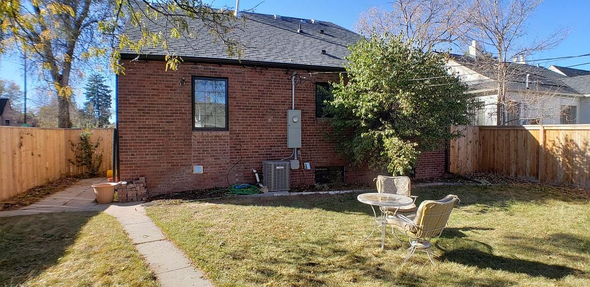 Embrace the charm of this inviting backyard space, perfect for relaxation and family gatherings. The lush green lawn is dotted with sunlight, creating a lively atmosphere. A small stone pathway leads to a quaint seating area with two weathered chairs and a circular table, ideal for enjoying morning coffee or evening conversations. Surrounded by sturdy privacy fencing, the backyard offers a tranquil escape from the hustle and bustle. Mature trees provide shade and a sense of seclusion, while the adjacent brick structure enhances the rustic aesthetic. It’s a versatile outdoor area perfect for play, gardening, or relaxation.