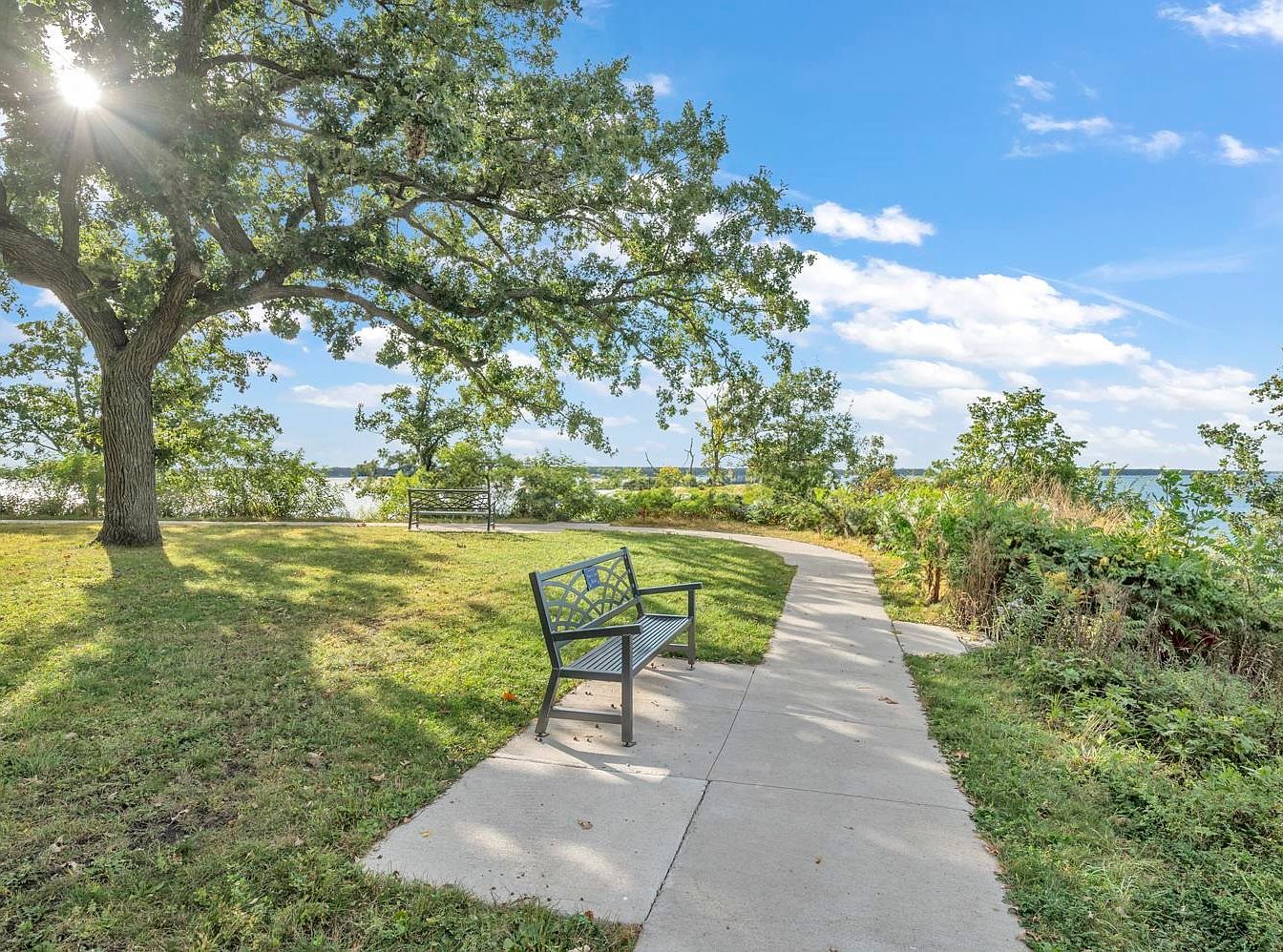 This serene outdoor space offers a perfect blend of nature and relaxation, featuring a winding path that invites leisurely strolls alongside the tranquil water. A sturdy park bench provides an ideal spot for moments of reflection, surrounded by lush greenery and mature trees. The vibrant grass showcases well-maintained landscaping, enhancing the inviting atmosphere. Sunlight filters through the leaves, creating a warm ambiance that beckons families to enjoy picnics or casual gatherings. With its picturesque views and harmonious design, this outdoor retreat is well-suited for those seeking to connect with nature and create lasting memories.