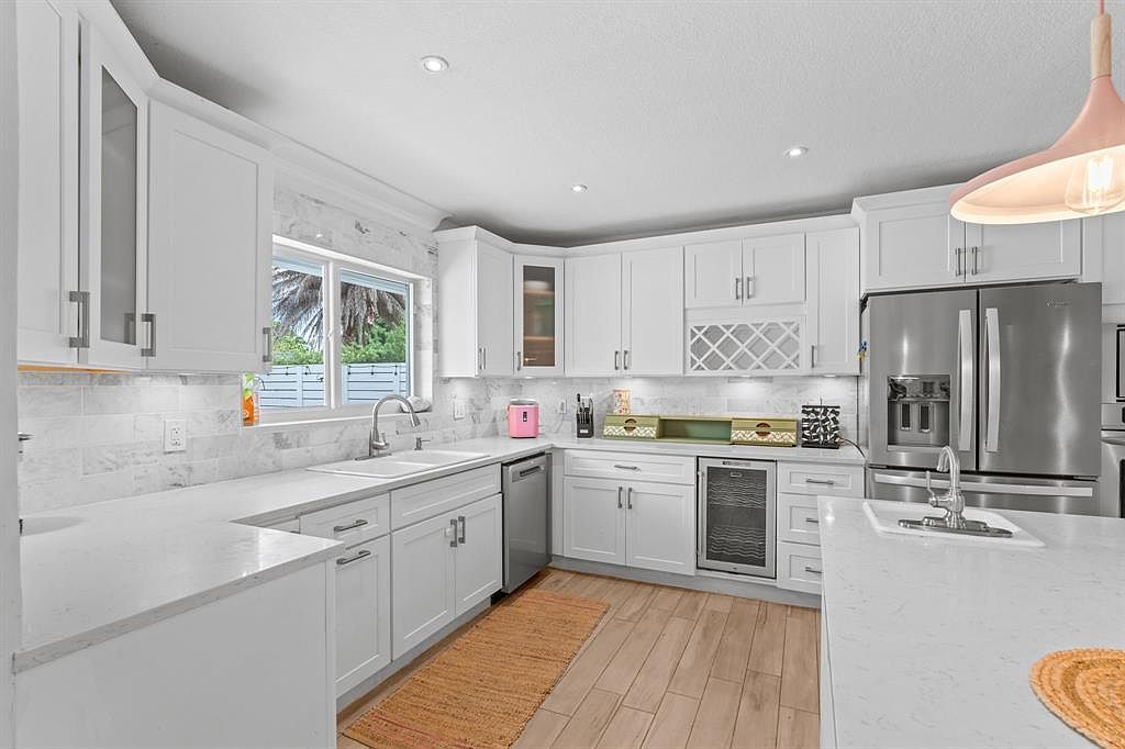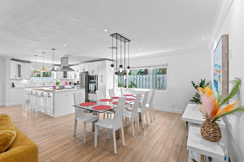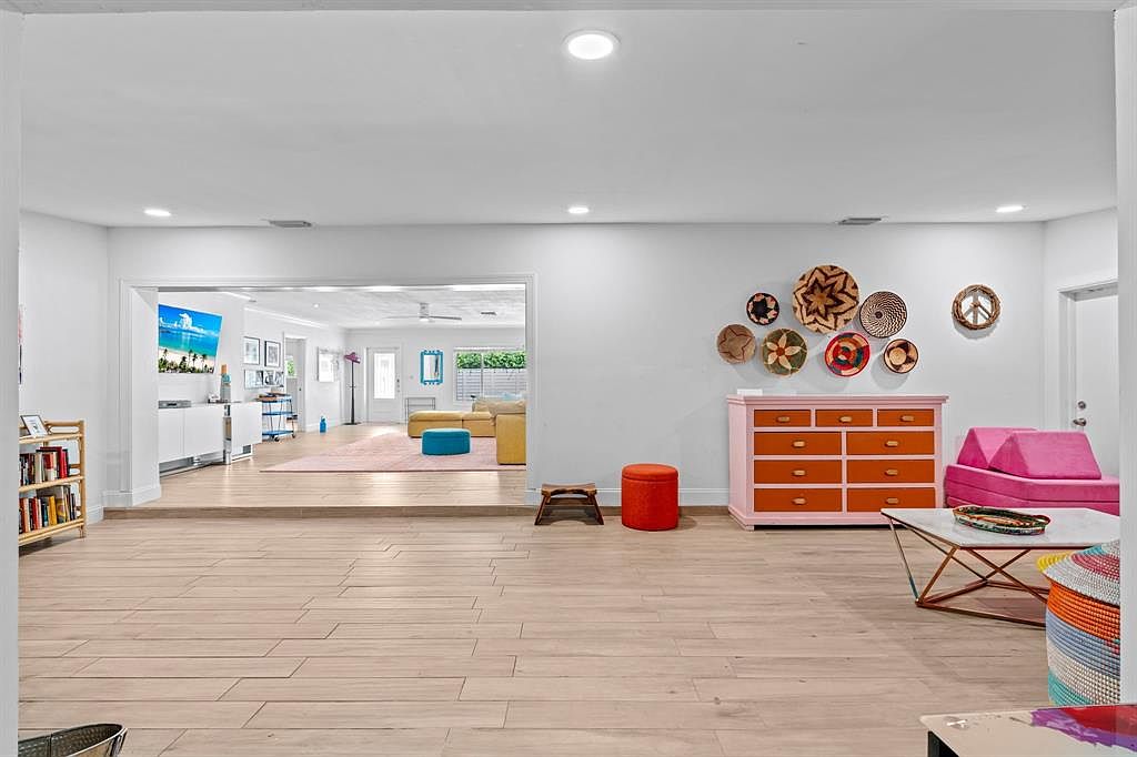 This completely renovated ranch-style home, once owned by Connie Francis, exemplifies historical significance and status appeal in Fort Lauderdale. Ideal for success-oriented individuals, it features two primary bedrooms, a spacious white kitchen, and two living areas, with a potential fifth bedroom option. Built with low-maintenance luxury in mind, the property boasts a saltwater heated pool, updated bathrooms with a soaking tub, and a new roof in 2024. Located near top-rated public schools, it has versatile zoning for Airbnb or primary residence. The home spans a generous plot area, listed at $989,000, making it a unique opportunity for both relaxation and investment in a prime location.
