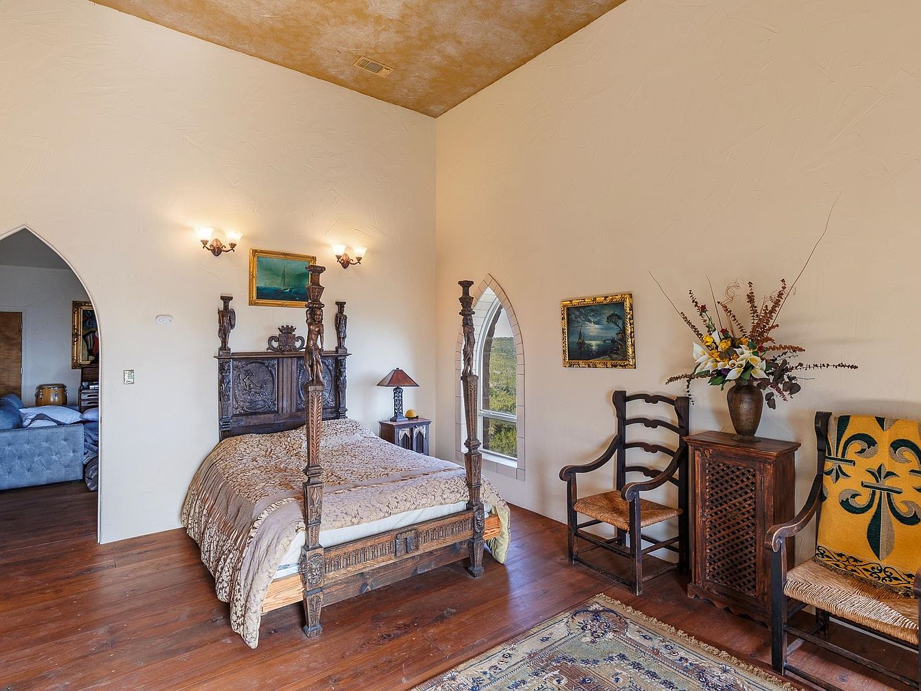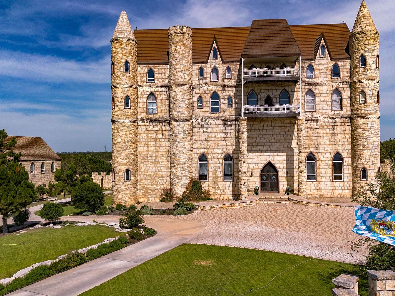 Falkenstein Castle in Burnet, Texas, stands as an architectural masterpiece and status symbol, modeled after the romantic Bavarian castles and representing both historical inspiration and modern luxury. Built atop 110 private acres with over 14,000 square feet of living space, this stone estate offers panoramic views of the Highland Lakes, 7 bedrooms, 8 baths, 6 tiny homes, and an additional apartment above the garage, perfect for successful, future-oriented individuals seeking privacy, versatility, and investment value. Its timeless European design makes it the Texas Hill Country’s crown jewel, ideal as a private residence or premier event venue. Listed at $14,000,000, Falkenstein Castle offers unmatched exclusivity, status appeal, and exceptional craftsmanship within the region’s scenic landscape.