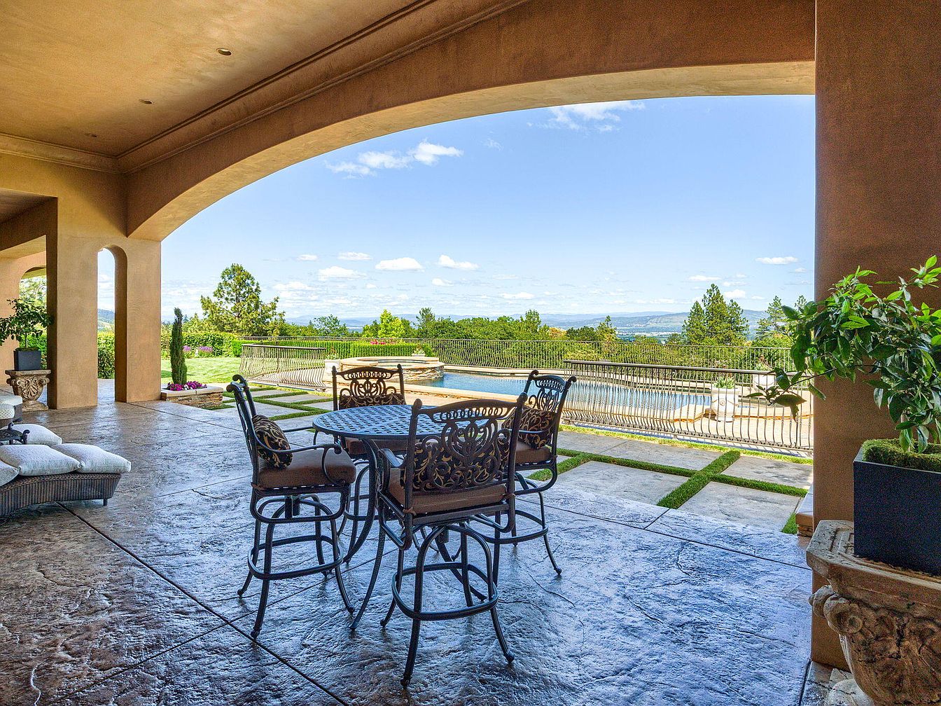 This impressive Mediterranean-style villa in Jacksonville, OR, reflects success through its exquisite architecture and private 5-acre lot, boasting panoramic views of the Jacksonville Mountains. Built by renowned builder Mike Pagnini, the estate offers 9,904 sq ft of luxurious living, featuring 4 primary suites, a stunning chef’s kitchen, and multiple entertaining spaces including a grand great room and theater. The stone gated entry and 12-car garage add to its status appeal, promoting a successful lifestyle. Built recently, the property is listed at $5,300,000 and includes elegant details like a Pebble Tec pool, covered patios, and a grand entrance with 13-foot double doors, perfect for a future-oriented individual seeking both comfort and prestige.