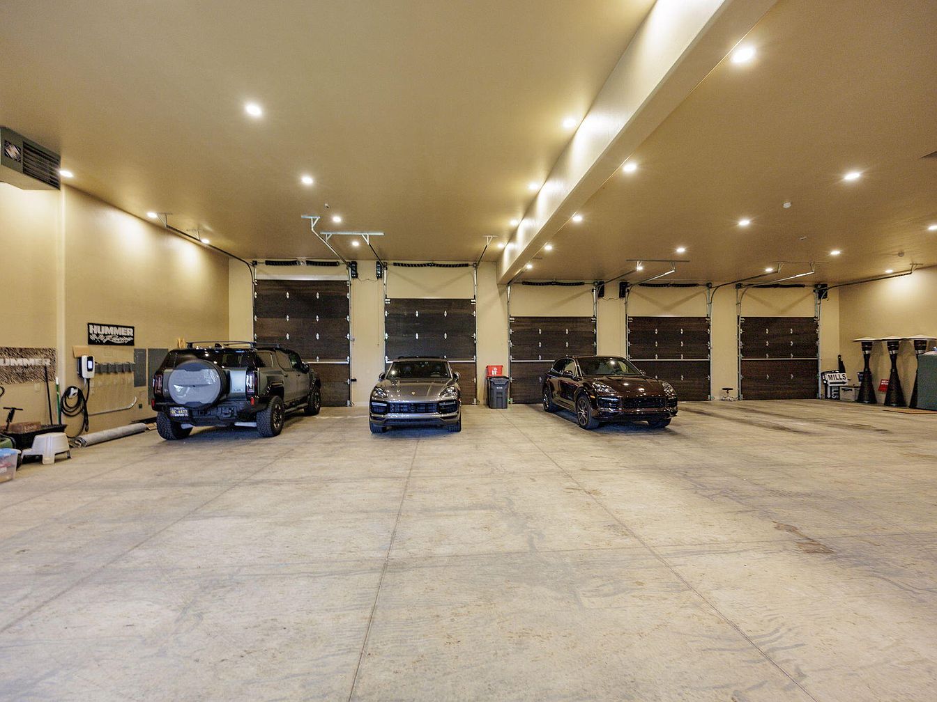 This expansive garage boasts ample room for multiple vehicles, showcasing an impressive layout that combines functionality and style. With high ceilings and bright LED lighting, it creates a welcoming atmosphere. The polished concrete flooring adds a modern touch, while the ample wall space allows for organized storage solutions and tools. Stylish garage doors provide easy access, contributing to a seamless design. Family-friendly features include electric charging stations for electric vehicles, ensuring convenience. The neutral color palette enhances the openness, making it a versatile space perfect for car enthusiasts or family gatherings, seamlessly blending practicality and elegance.