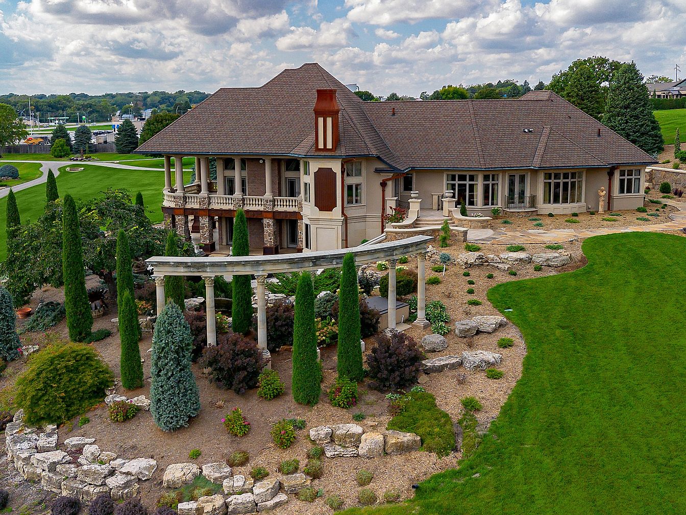 Nestled on nearly 18 acres in Algona, Iowa, this estate exemplifies luxury and visionary potential, making it an ideal residence for the discerning, success-oriented individual. Built with timeless craftsmanship, it features Corinthian columns, soaring ceilings, and exceptional millwork that reflect a rich legacy. The château-inspired architectural style complements sculpted gardens and a serene koi pond, enhancing its status appeal. Recent renovations further the estate’s allure, while the inclusion of an adaptable outbuilding provides flexibility for various pursuits. Priced at $3,250,000, and boasting extensive grounds, the estate also offers preliminary subdivision plans, solidifying its appeal not just as a home, but as a future-oriented investment.