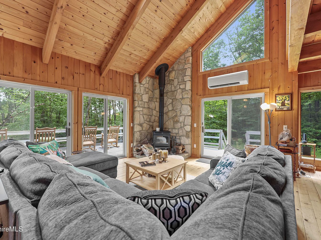 This remarkable Post & Beam chalet, nestled on over 25 acres near Jiminy Peak, offers a perfect escape for future-oriented individuals. Built with high ceilings and modern updates, it boasts a spacious layout ideal for gatherings, complete with a stunning kitchen featuring granite countertops and energy-efficient appliances. Recent renovations include the addition of high-efficiency mini splits for climate control and a new electric hot water system. Its location combines scenic nature with cultural gems like the Clark Art Institute nearby. Priced at $765,000, this home reflects a status appeal rooted in luxurious privacy and outdoor adventure, making it a quintessential retreat to inspire creativity and success.