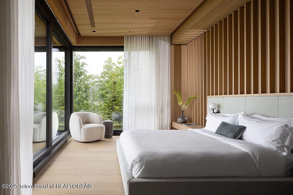 Nestled in Jackson, WY, The Sky House, priced at $23,950,000, occupies a stunning 6.41-acre landscape and spans 6,574 square feet. This contemporary residence showcases a unique architectural style blending Japanese and European influences, emphasizing light and natural materials such as warm European oak and Italian travertine. Completed with five ensuite bedrooms and modern amenities, it exemplifies a successful, future-oriented lifestyle. The home’s expansive windows and serene design invite nature indoors, fostering tranquility and clarity. Recent renovations enhance its technological precision and aesthetic feel, all while maintaining a dialogue with the breathtaking surroundings, offering an exceptional living experience for those seeking harmony between luxurious living and environmental rapport.