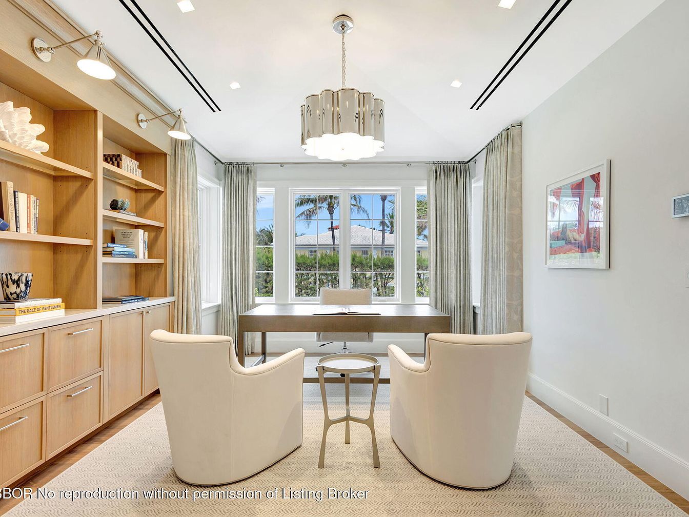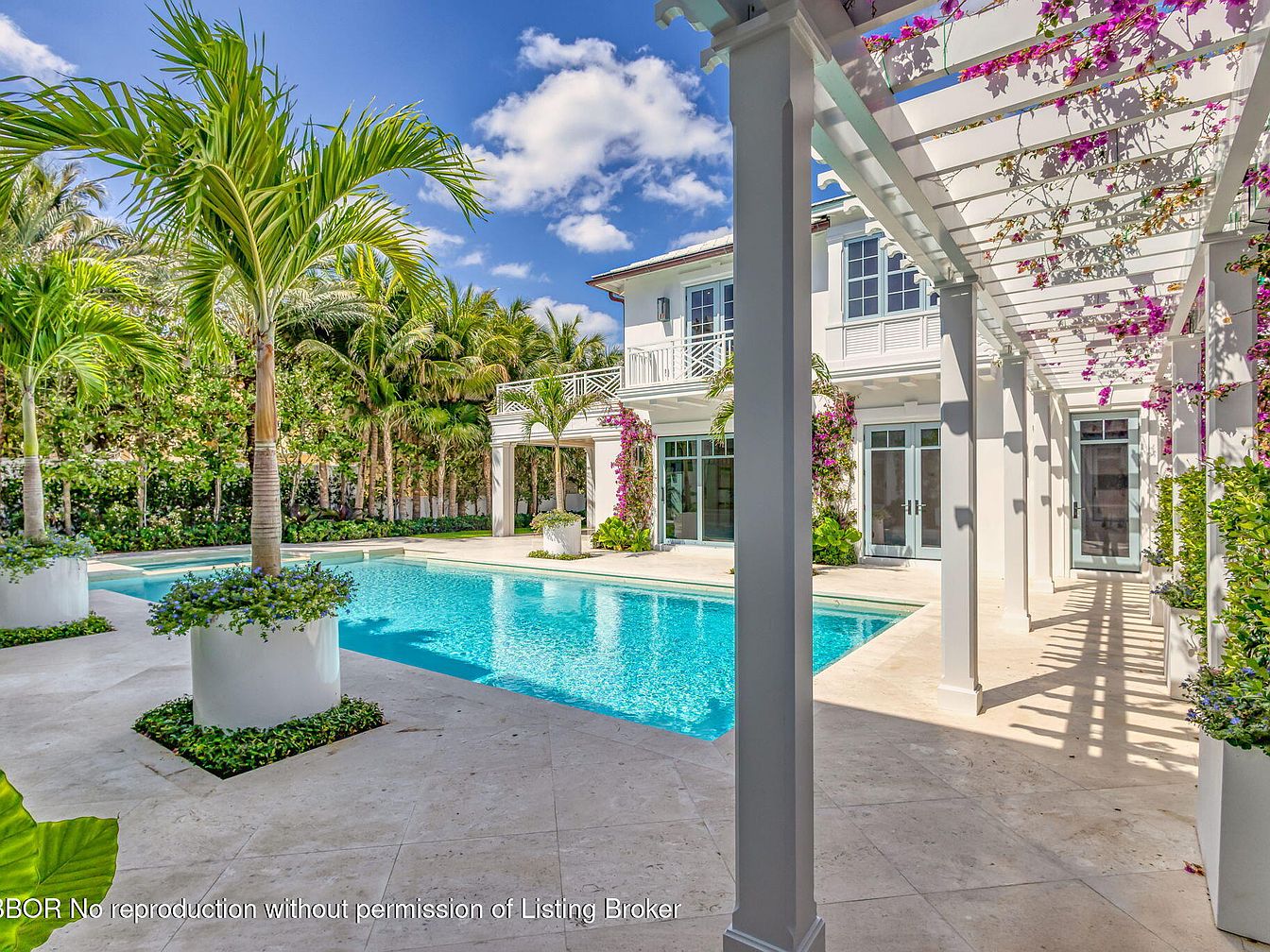 This newly constructed Bermuda-style estate on Billionaires Row in Palm Beach, built to embrace success, features 16,500± sq. ft. of luxury on .98± acres, complete with a main residence and guest house. Its architectural elegance, designed by Dailey Janssen Architects, includes 8 bedrooms and 12.5 baths, showcasing refined interiors with custom finishes and panoramic Atlantic views. The property, priced at $79,500,000, is elevated at 20.3 feet for security while offering a private beach tunnel. Recent renovations enhance its grand foyer, gourmet kitchen, and resort-style pool, making it ideal for the discerning individual seeking opulence and modern coastal living near upscale amenities and Palm Beach International Airport.