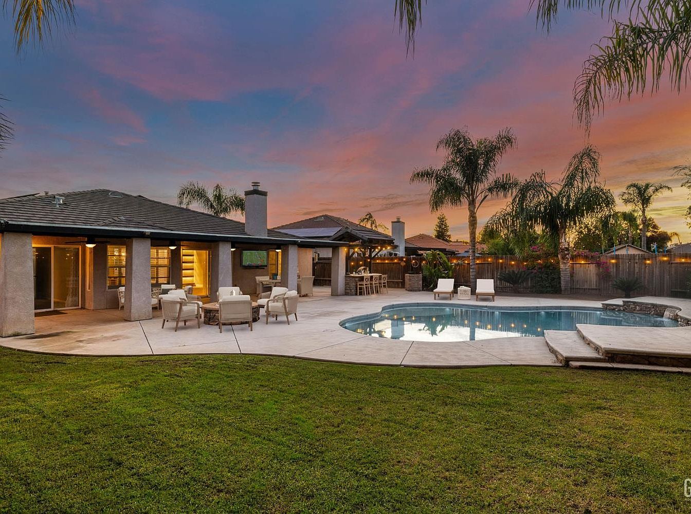 This stunning contemporary home, located in Bakersfield’s prestigious Norris School District on a tranquil cul-de-sac, radiates status and comfort, ideal for those with a vision for success. Featuring a flexible split wing design with formal living and dining, a cozy fireplace great room, and a gourmet kitchen updated with granite counters and a new cooktop, the residence is perfect for family gatherings and professional entertaining. The highlight is an expansive backyard oasis: Pebble Tec pool, waterfalls, tanning ledge, fire pit, and a state-of-the-art outdoor kitchen under a full-length patio, delivering year-round enjoyment. Priced at $559,000, the meticulously maintained home also offers a finished garage, advanced water system, and the versatility to adapt office space as needed, making it a smart, future-forward investment.