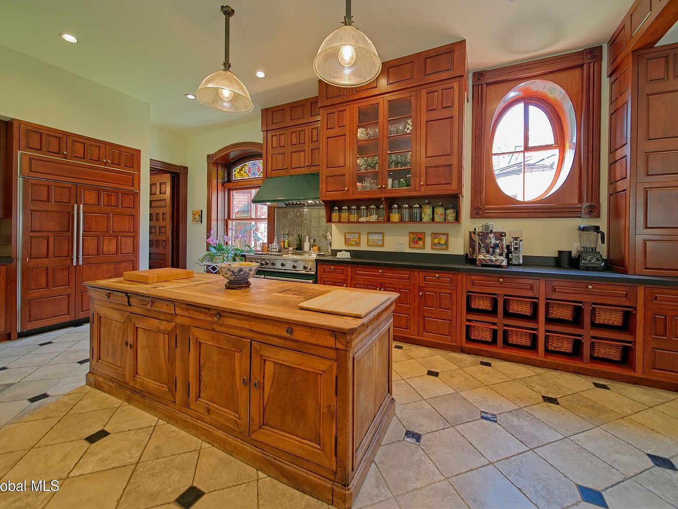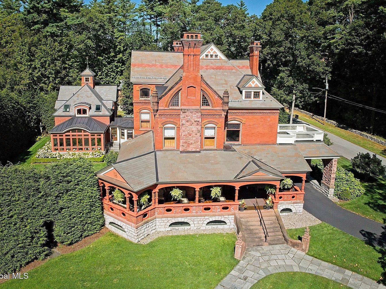 Redstone stands as a testament to historical grandeur and modern excellence, exuding status appeal on prestigious North Broadway in Saratoga Springs, NY. This fully restored Queen Anne Romanesque Revival home, with brick and sandstone façade, eleven-foot ceilings, masterful woodwork, and stained glass, invites success and future-oriented living through its blend of original artistry and contemporary amenities. The home features seven en suite bedrooms, a luxurious primary suite, a showcase kitchen, wine cellar, elevator, and a 2015 award-winning Carriage House addition with reclaimed wood and natural light-filled cupola. Perfectly located near downtown and Skidmore College, its lush gardens and wraparound porch enable refined entertaining. Listed at $7,990,000, it naturally caters to those with ambition and vision.