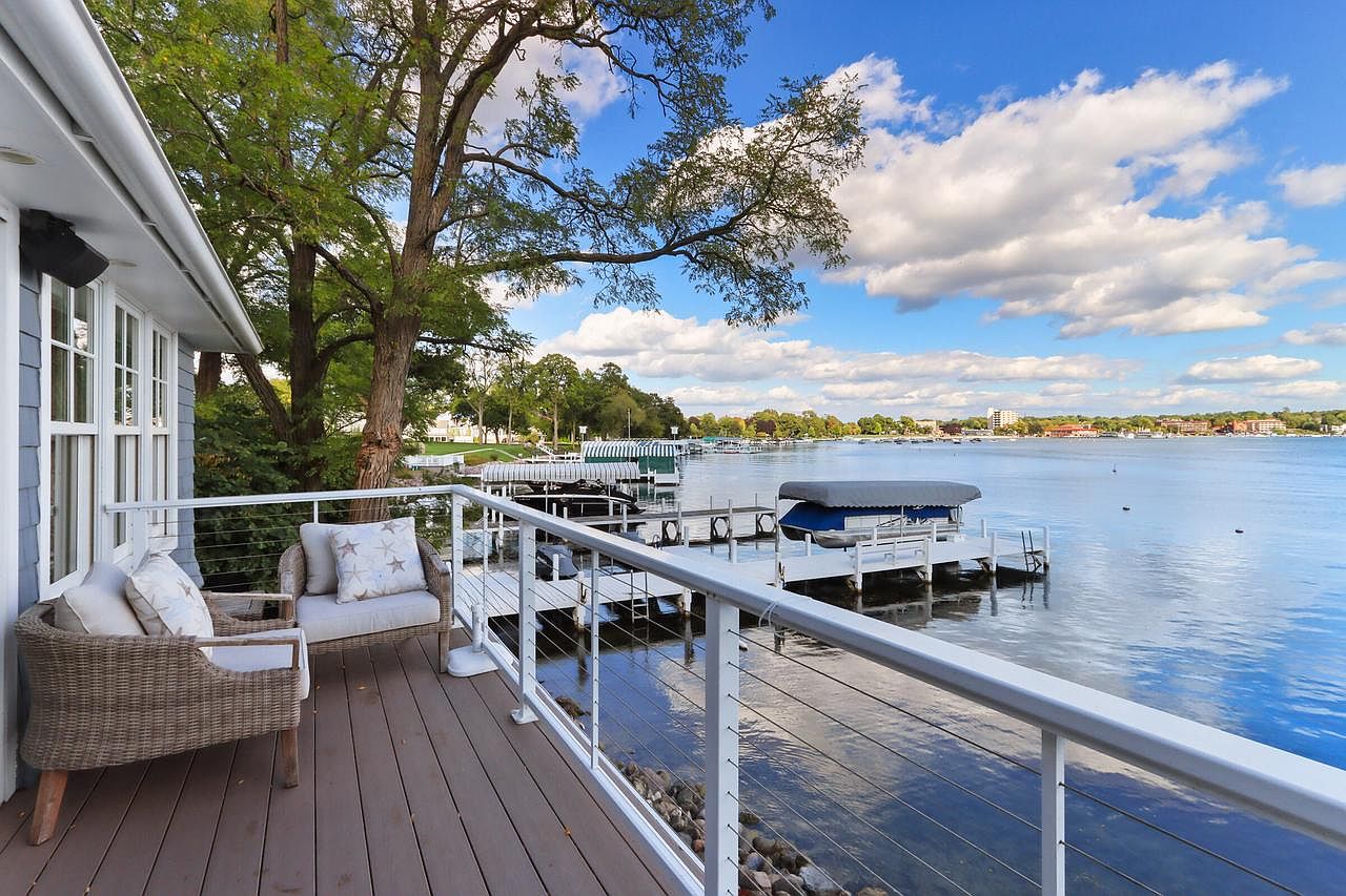 This classic shingle style boathouse on Lake Geneva’s prestigious East end offers both historical charm and status appeal, perfect for the successful, future-focused homeowner. Featuring a grand gated entrance, cobblestone drive, and lush perennial gardens, the property ensures lakeside privacy with prime shore path access and a massive private pier. Renovated thoroughly in 2013, the three-level home boasts five bedrooms, five baths, a luxurious primary suite with fireplace and lakeside balcony, plus a flexible detached garage with a studio suite. A fully fenced, expansive lot provides ample space for leisure and entertaining. Just a short stroll from restaurants and shopping, this remarkable retreat is currently listed at $7,395,000, embodying the ultimate in waterfront living and investment potential.