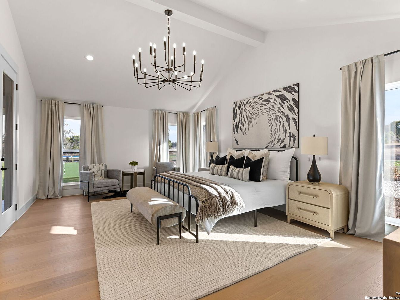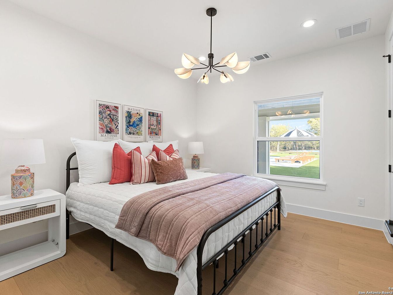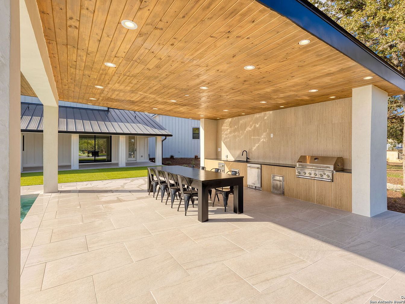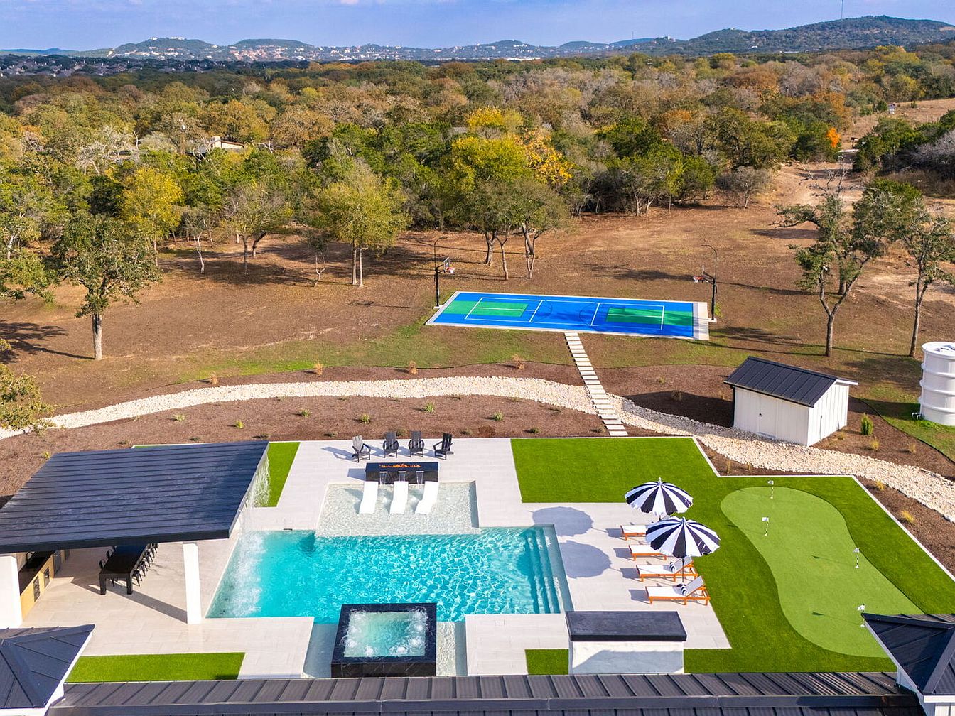 Situated on five acres in San Antonio, 24840 Breeze Oak Lane exudes luxury and modern appeal, making it ideal for future-oriented individuals. Built with a complete remodel, preserving only a portion of its original slab, the home showcases contemporary architectural style with soaring ceilings and natural light throughout. The property features premium amenities, including a chef’s kitchen, home gym, and versatile living quarters. Notably, the exquisite outdoor space is designed for relaxation and entertainment, featuring a resort-style pool, oversized hot tub, and sports courts. Priced at $2,899,700, this estate elegantly embodies a lifestyle of tranquility and sophistication, perfectly blending comfort with high-end living in a prime location.