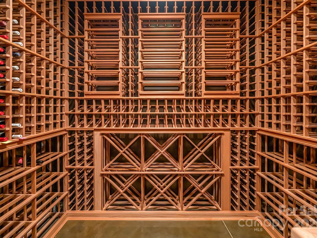 Expansive custom wine cellar designed for both style and functionality, featuring an array of meticulously crafted wooden racks that offer versatile storage options for wine enthusiasts. The warm, natural wood creates a welcoming, earthy ambiance perfect for showcasing an extensive collection, while the horizontal and diamond-shaped compartments allow for easy organization and display of bottles. The layout maximizes wall space without feeling cluttered, making it both practical for frequent use and aesthetically pleasing. This space can serve as a unique family gathering spot for special celebrations, blending fine craftsmanship with a touch of luxury and sophistication.