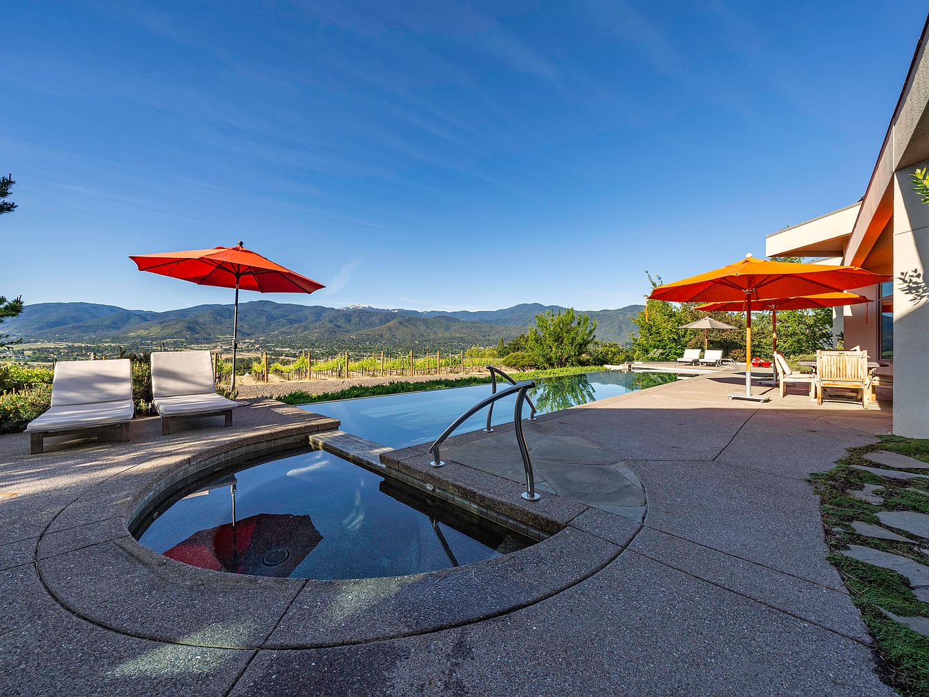 The Paradox Vineyard Estate in Ashland, Oregon, epitomizes sophisticated living for success-oriented individuals, blending award-winning modern architecture with environmental stewardship in the scenic Rogue Valley. Certified by LEED, Energy Star, and Green Globes, the home radiates prestige and eco-conscious appeal, featuring a striking skylight galleria, four open-air water courts with basalt fountains, and panoramic mountain views. Mature landscaping and private amenities like an in-ground spa, lap pool, and organic vineyard create a tranquil yet productive retreat. Located in an exclusive rural enclave just five miles from Ashland’s downtown, this estate offers 21st-century luxury and turn-key vineyard operations, all for a listing price of $3,900,000, making it the perfect residence for future-focused achievers.