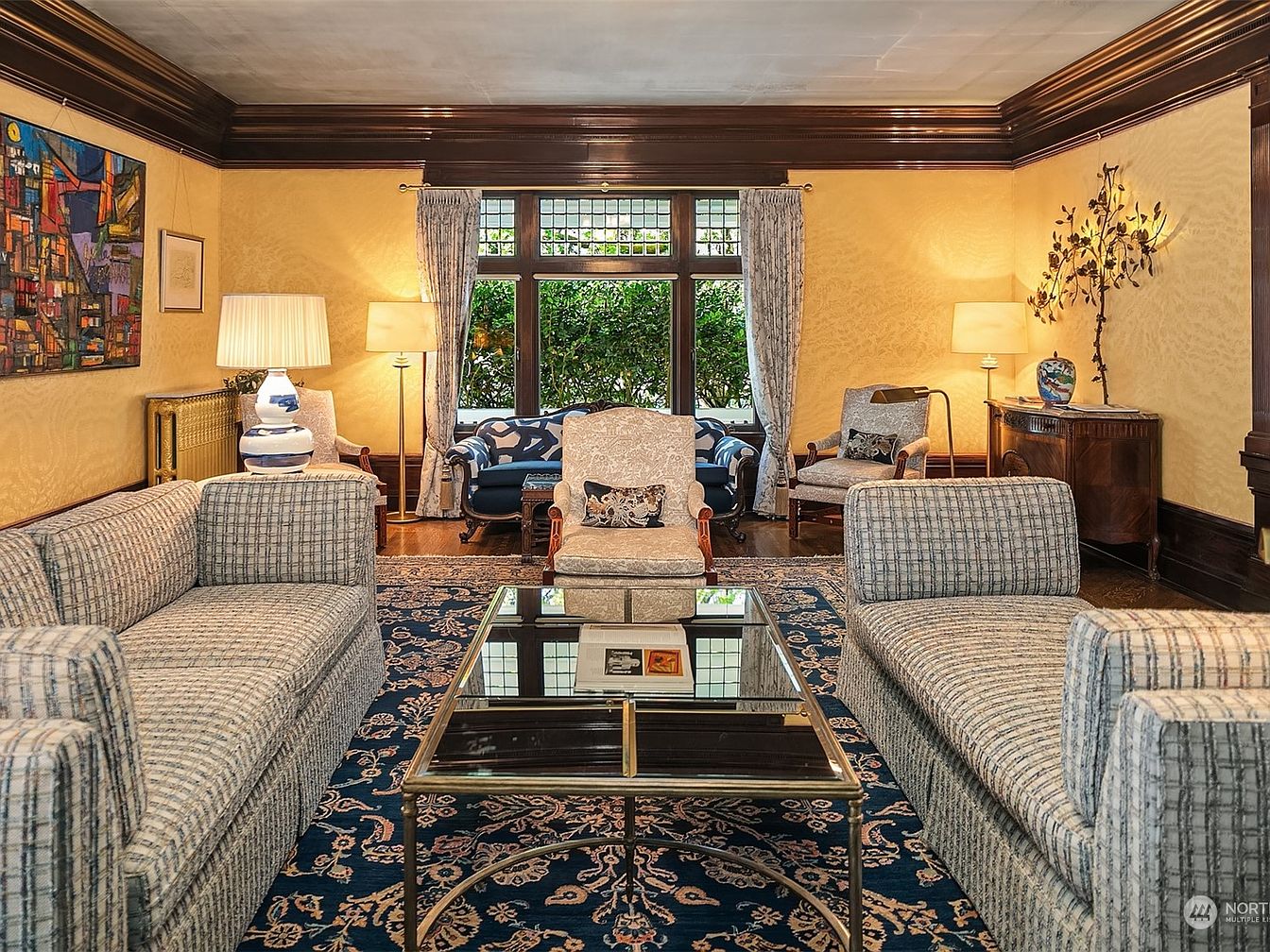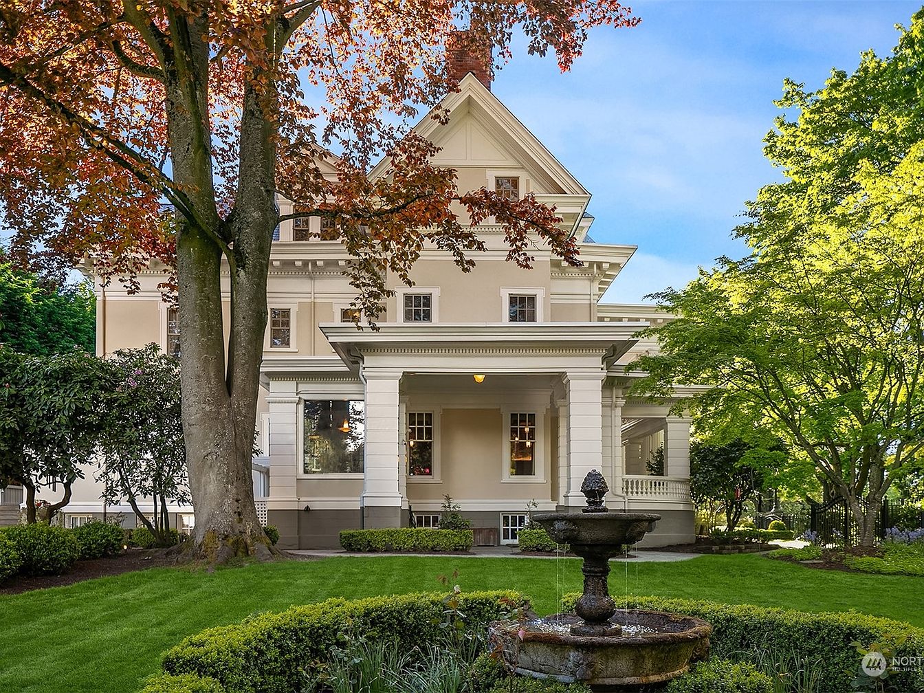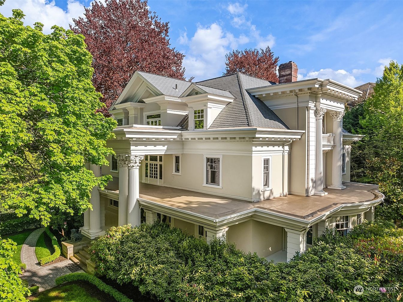 This historic Capitol Hill Mansion in Seattle is a paragon of status and legacy, renowned for its blend of early 20th-century sophistication and contemporary comfort. The striking classical architectural style, marked by grand columns and ornate cornices, sits gracefully within over half an acre of lush, gated gardens. Designed for those who prize success and forward-thinking living, it offers a grand central mahogany foyer, formal living and dining spaces with original Tiffany pendants, and modernized retreats including a sumptuous kitchen and a lower-level media suite. The property’s plot area amplifies privacy and prestige, notably enhanced by a carriage house and port-cochere. Recently listed for $5,350,000, this mansion stands as a rare opportunity to own a piece of Seattle’s illustrious history.