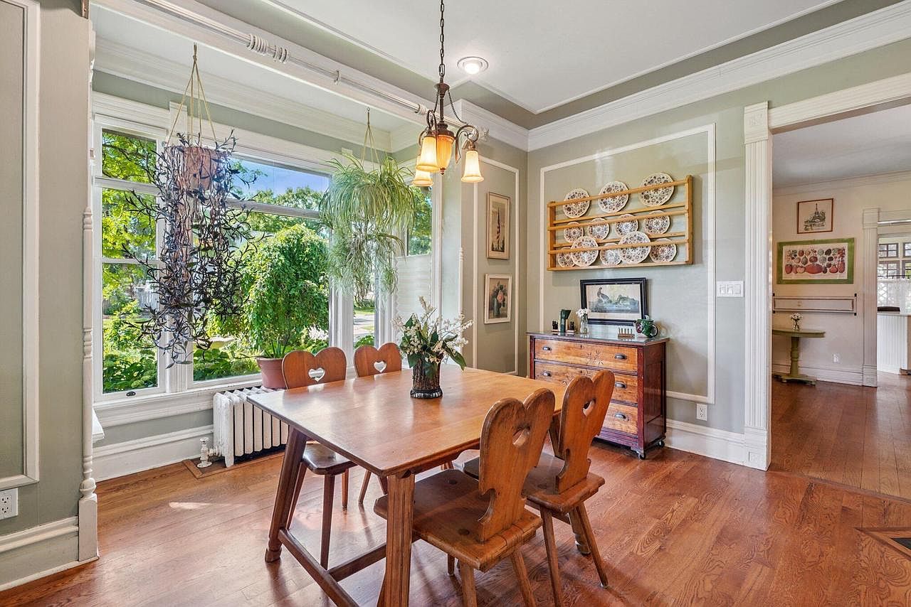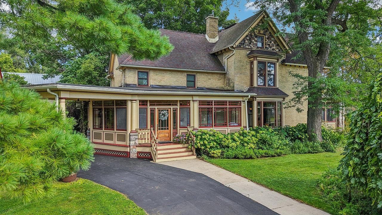 Known as “The First Christmas Card Home in Elkhorn,” this iconic 1890 Queen Anne Victorian epitomizes status and timeless appeal, making it ideal for the success-driven, future-oriented owner who appreciates heritage and charm. Set in Elkhorn, WI, this meticulously preserved home sits on a 1-acre fenced lot, boasting intricate woodwork, grand staircases, and two screened porches. With 4 upstairs bedrooms, 2.5 baths, bonus attic and a whimsical carriage house with a workshop, it offers ample space for ambitions and gatherings. Original details, modern gardens, fire pit, brick patio, and imaginative potential make this $675,000 property a rare opportunity to own a residence with both historical significance and inspiring future possibilities. Square footage and renovation details are not provided.