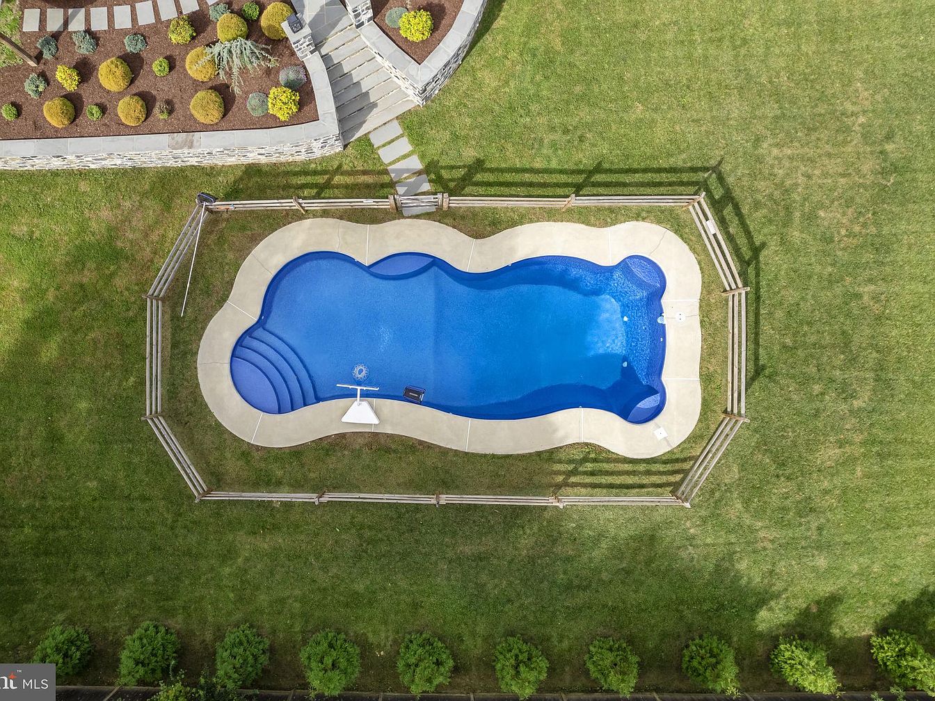 Expansive backyard features manicured gardens, a classic swimming pool with secure fencing, and a sweeping lawn perfect for family play or entertaining guests. The home’s striking stone façade and wraparound porch with detailed woodwork highlight Victorian architectural charm, while mature trees provide privacy and seasonal beauty. A winding driveway and basketball hoop create a welcoming, active space for all ages. With plenty of room to run and relax, this outdoor area offers a harmonious blend of timeless elegance and family-friendly amenities, making it perfect for gatherings, weekend barbecues, or a quiet evening outdoors.