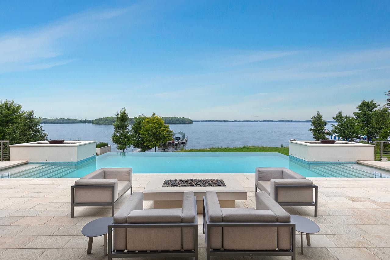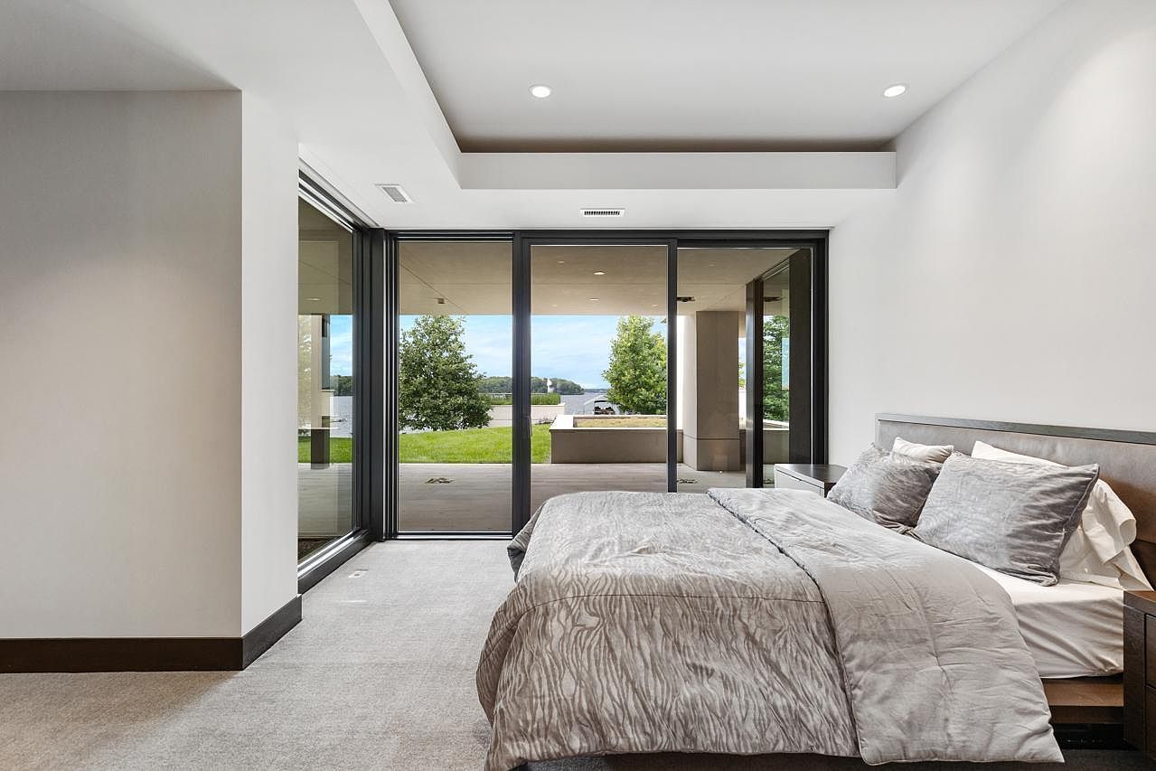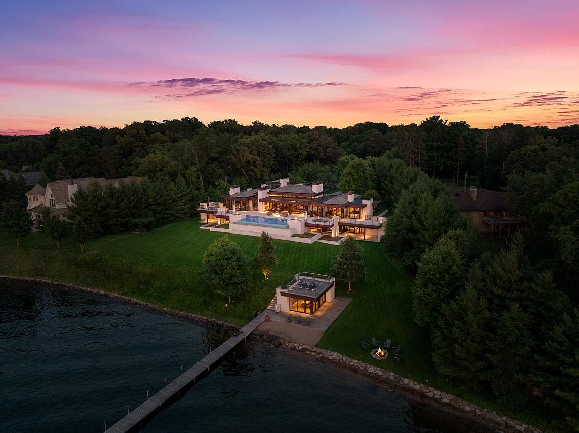 This extraordinary modern estate on Lake Minnetonka in Excelsior, MN, designed by the renowned Charles Stinson and meticulously built by Streeter, epitomizes status, success, and a visionary lifestyle. Perfect for a future-oriented homeowner, the residence spans an ample 2.39 acres with over 350 feet of lakeshore, boasting panoramic water views, unparalleled privacy, and seamless indoor-outdoor living through massive sliding glass doors. Luxurious amenities include two executive offices, a six-car heated garage, a chef’s kitchen, an infinity pool, spa-like suites, a wine cellar, and a boat house with a rooftop deck. Every detail is executed to perfection, with recent renovations ensuring cutting-edge comfort and prestige. Priced at $22,000,000, this home is the pinnacle of achievement and elegance.