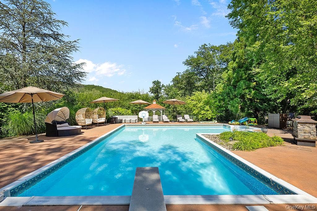 Nestled privately on Blue Note Lane in Stony Point, NY, this custom-built colonial estate epitomizes prestige and sophisticated living, making it ideal for the success-driven, future-oriented homeowner. Its resort-style amenities include a grand inground heated saltwater pool and country club-sized deck, perfect for entertaining and relaxation, all amid manicured, mature landscaping. The architectural style blends traditional colonial elegance with modern luxury, featuring vaulted ceilings, skylights, hardwood floors, and a chef-designed high-end kitchen. While the exact year built isn’t specified, the home’s meticulous condition suggests recent, tasteful renovations. Minutes from Palisades Parkway and Hudson Valley attractions, this 1.95M estate is designed for those seeking luxurious privacy and convenient access to the region’s best.