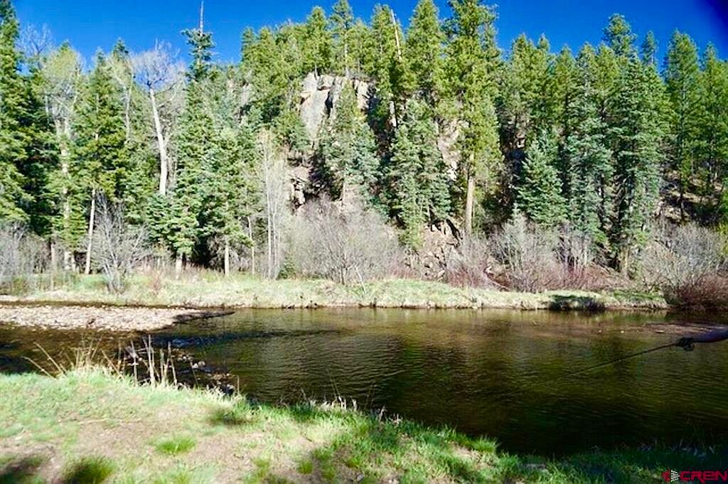 A tranquil riverside scene unfolds in the backyard, where a gentle stream winds past lush, green banks framed by towering pine trees. The landscape provides privacy and a peaceful retreat ideal for families, with plenty of grassy areas for children to explore and play. The natural rock formations and dense forest backdrop create a stunning setting for outdoor gatherings or quiet afternoons. The overall atmosphere is serene and rejuvenating, offering endless opportunities for fishing, picnicking, and connecting with nature right outside your door. Crisp blue skies and vibrant greenery round out this inviting, family-friendly environment.